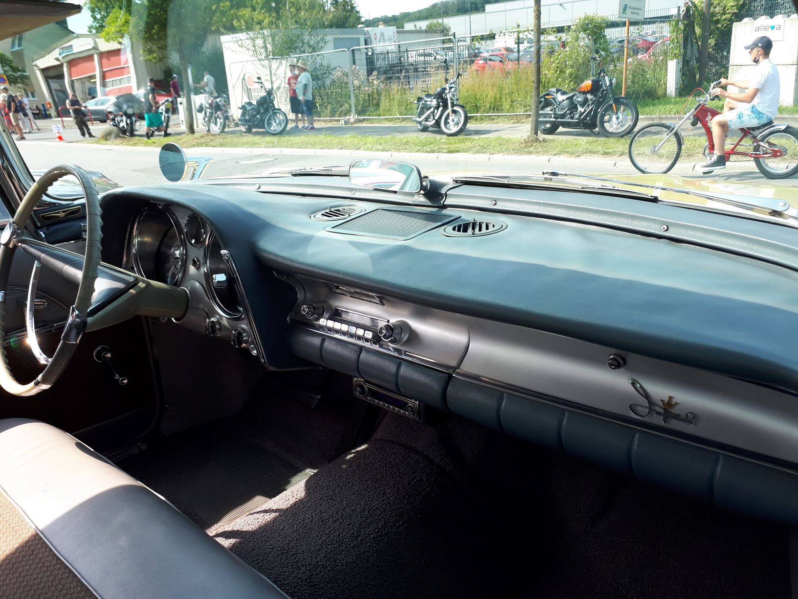 Le rétro intérieur plus près du conducteur à partir de 1958 est une amélioration si l'on peut dire du champ de vision car sinon avec une personne au centre à l'arrière on ne voit que lui ! J'en sais quelque chose. A noter aussi en 58 la grille chauffage/Haut parleur en une seule partie, au lieu de 3 en 1957. On gagne un peu de temps au montage et d'argent au moulage unique ....