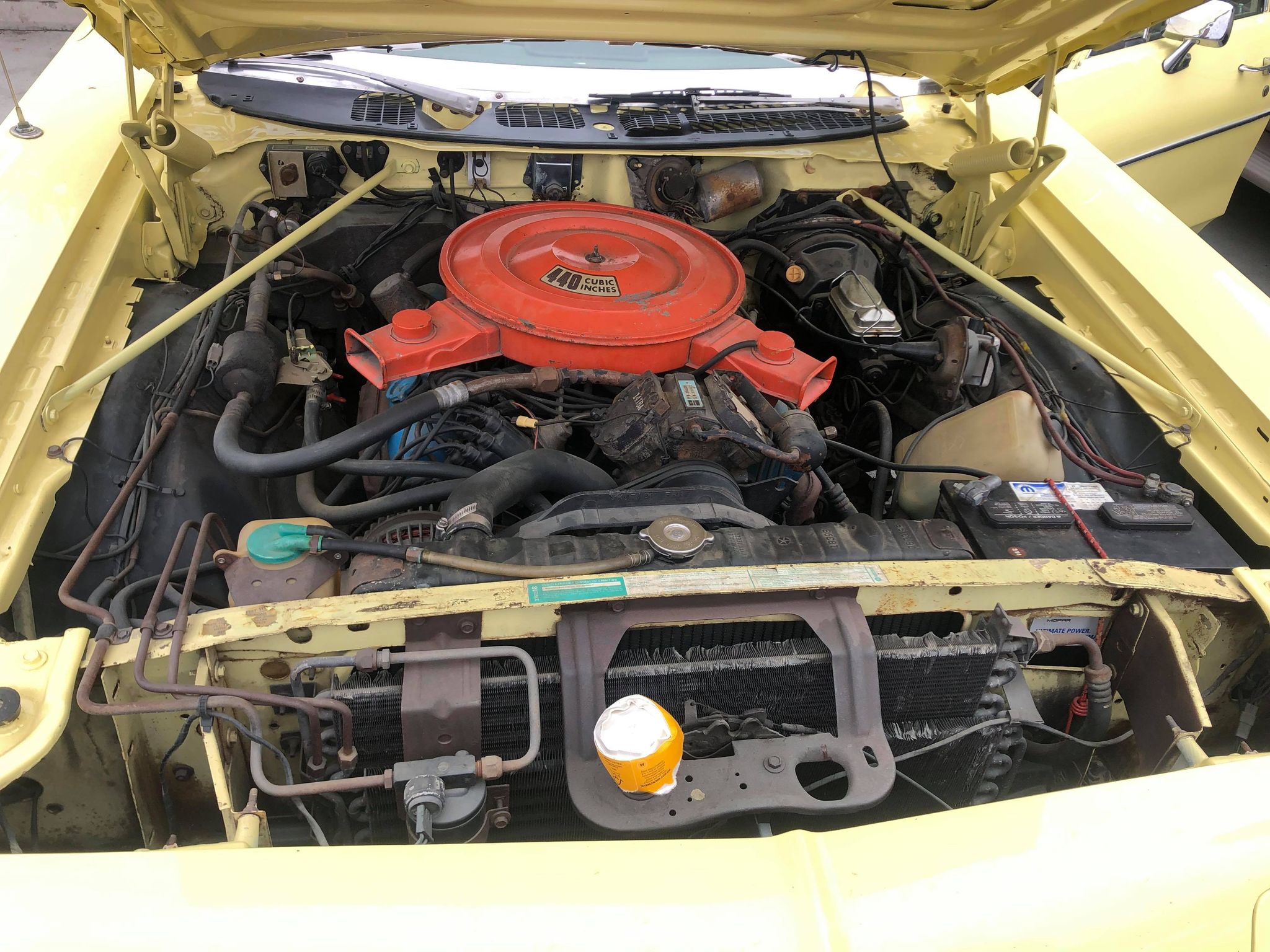 et évidemment le plus gros moteur, le 440 ci avec l'option "heavy duty" côté boîte avec refroidissement supplémentaire. Mais pas d'attelage, curieux ...