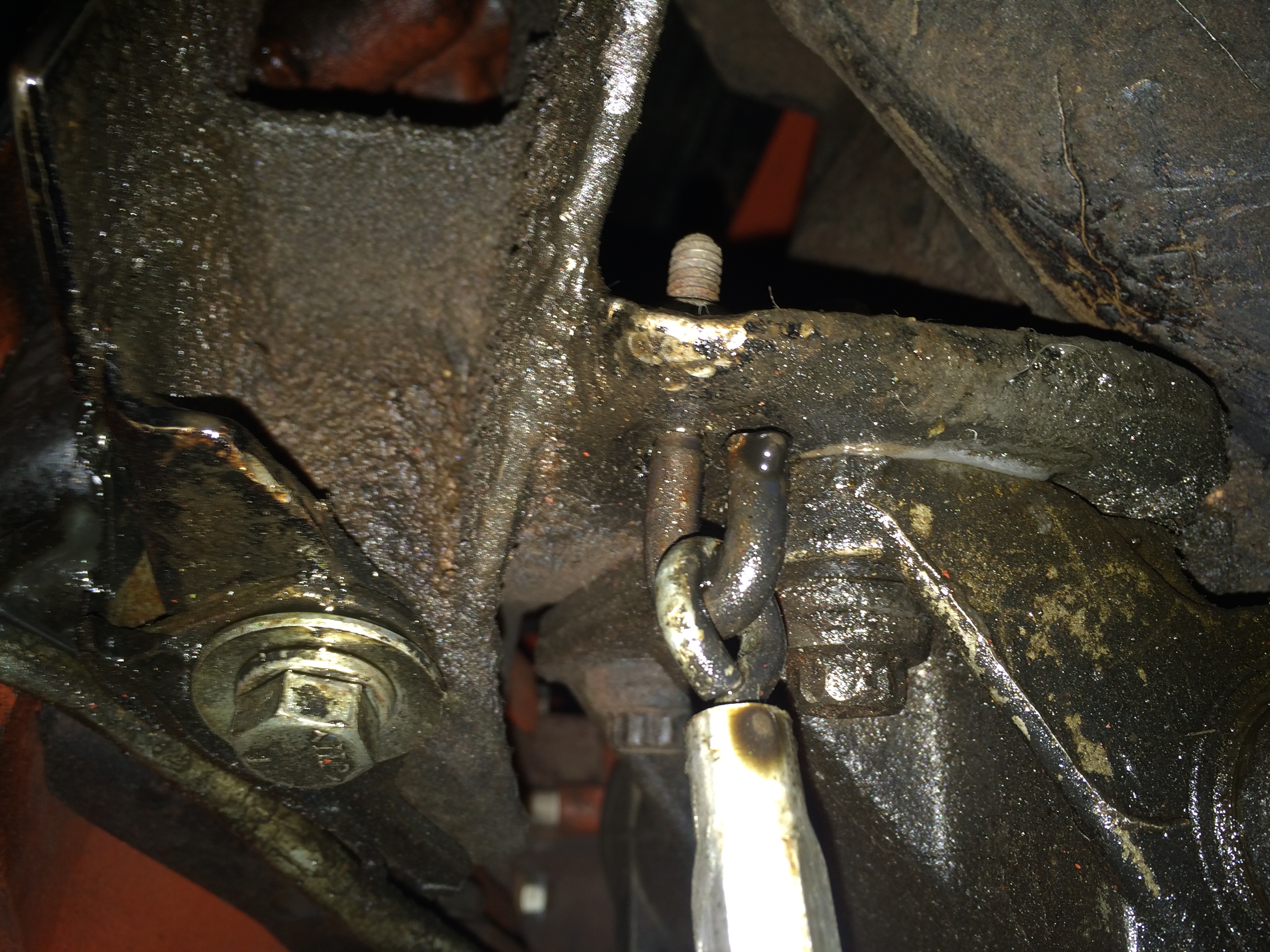 La connerie est que pour le moment la pédale reviens en arrière par un long ressort qui passe à 0.5 cm du pot d’échappement. Ce ressort est tendue par un tendeur de ressort avec ridoir, qui est lui même attaché à un crochet visé dans le K menber.