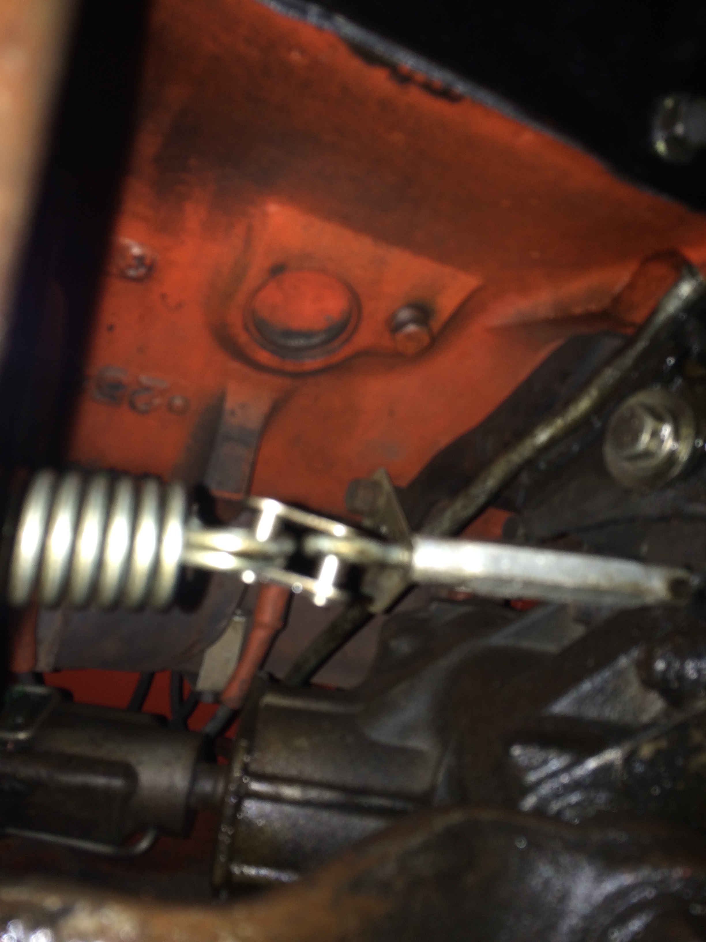 La connerie est que pour le moment la pédale reviens en arrière par un long ressort qui passe à 0.5 cm du pot d’échappement. Ce ressort est tendue par un tendeur de ressort avec ridoir, qui est lui même attaché à un crochet visé dans le K menber.