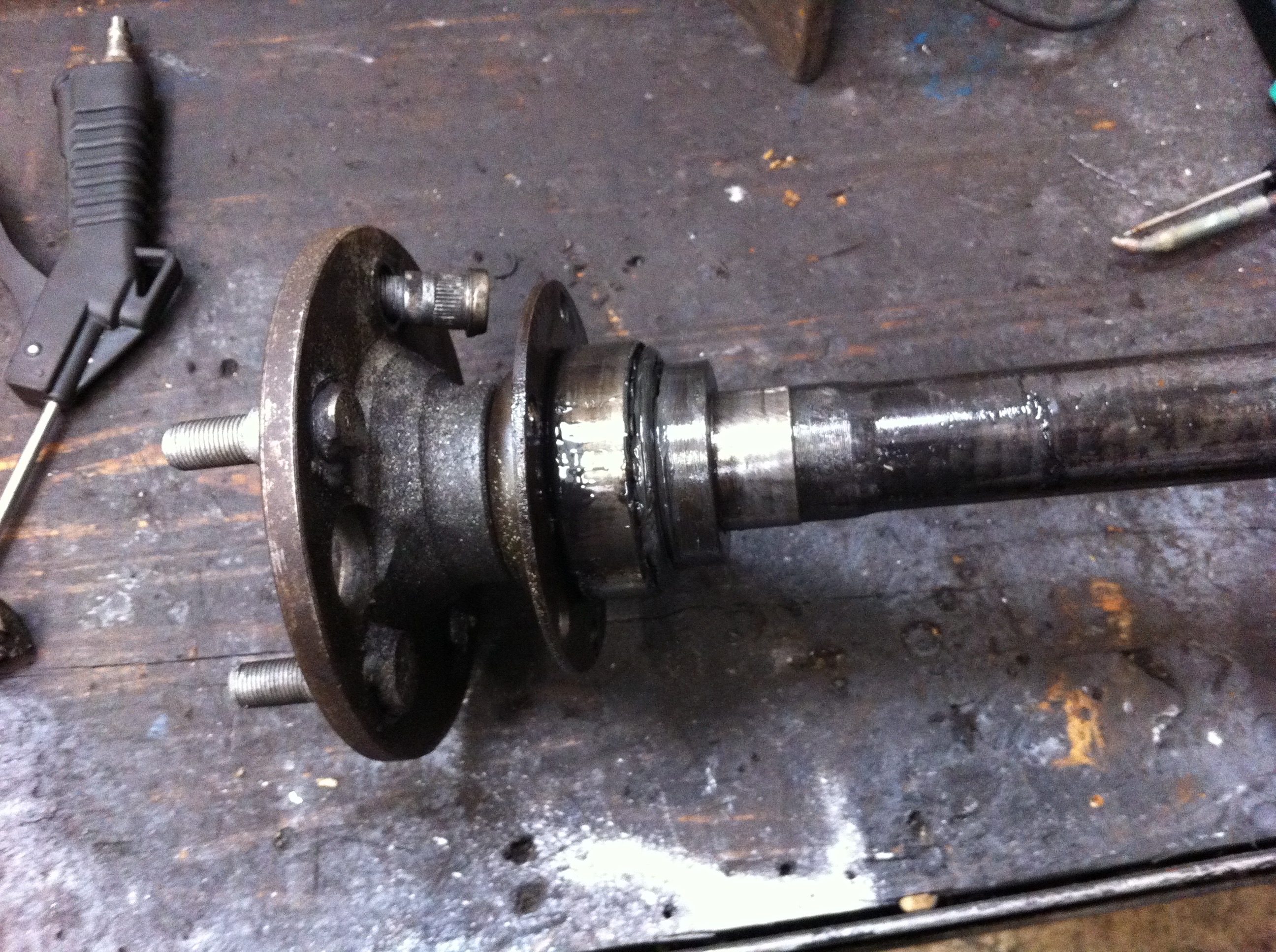 Ils les ont donc remplacer par des pas classiques, mais pas du bon diamètre ,donc, jeux sur la flasque du demi arbre et ils l'ont donc soudés :angry: réparation a l'Africaine...... Ca a lâché..... :grr: