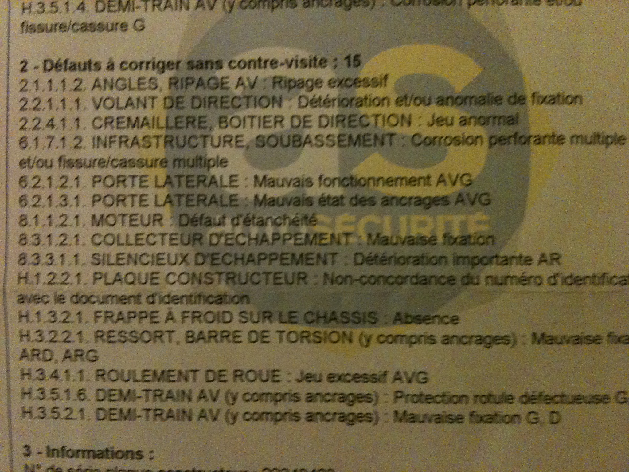 On a emmené le char au contrôle technique pour faire le certificat d'immatriculation avant la future augmentation de 17 %, pour avoir le papier même si je savais quel passerai pas le CT.