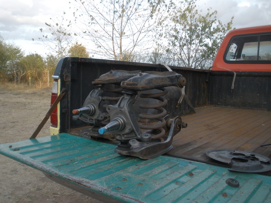 les fusées decalées sont droppées 2" et avec les bras inferieurs pocket style ça devrait sacrément rabaisser l"avant du pickup . j'ai hate d'avoir les disques et roulement pour voir ce que ça donne.