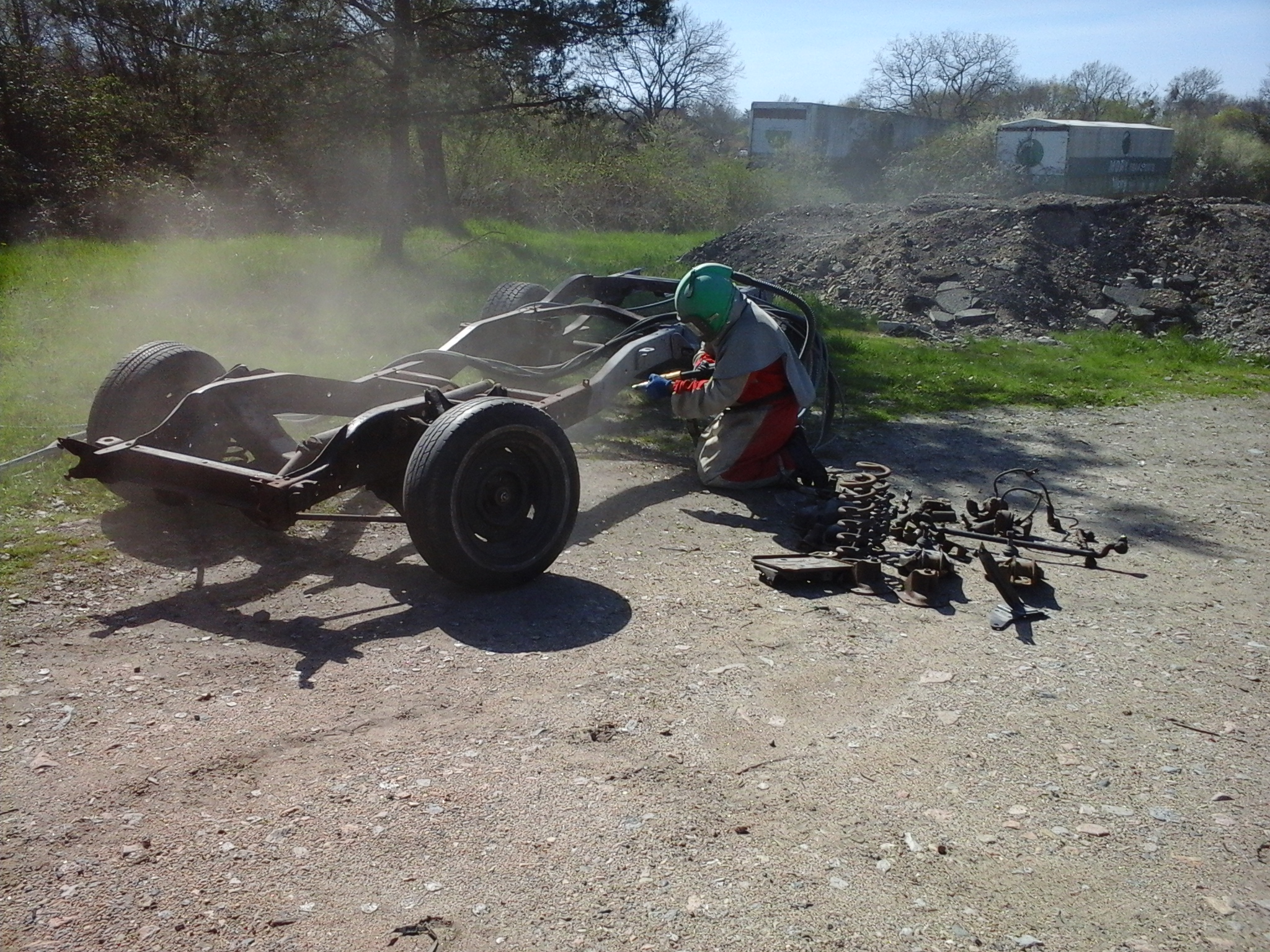 Va falloir attendre un peu toutes les sableuses sont louées et comme je vais louer ça pour un week-end c'est pas trop grave. je vais continuer à preparer mes pieces et le chassis. bonne nouvelle j"ai recuperé des fusées decalées pour dropper l'avant" komyfo"