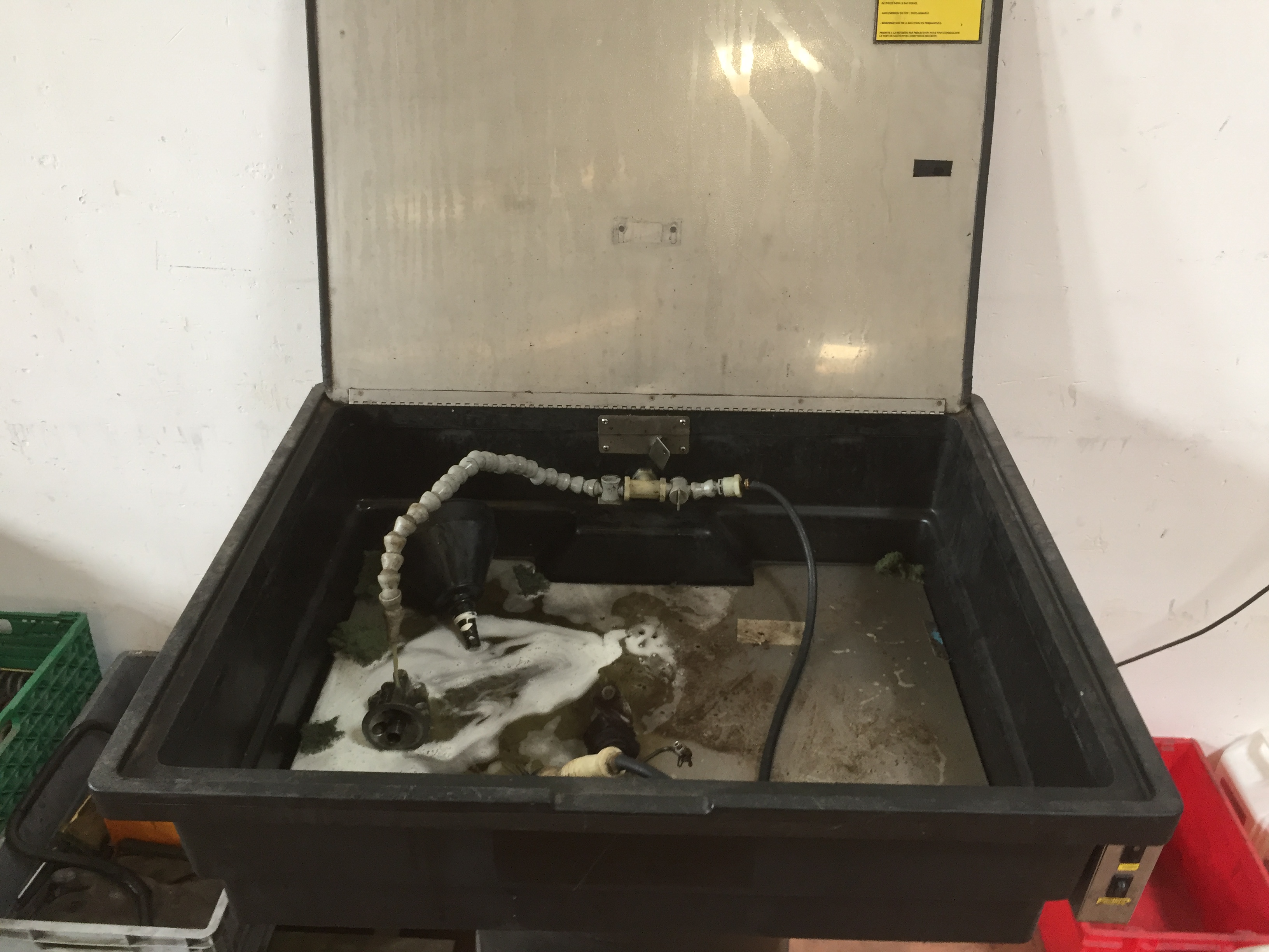 pour le reste les petites pièces je e fait chez mon ami dans sa petite cabine c'est le top pas de poussière pas de perte de sable en plus il a une cabine de peinture pour la peinture du châssis pont train av ça va faire impec