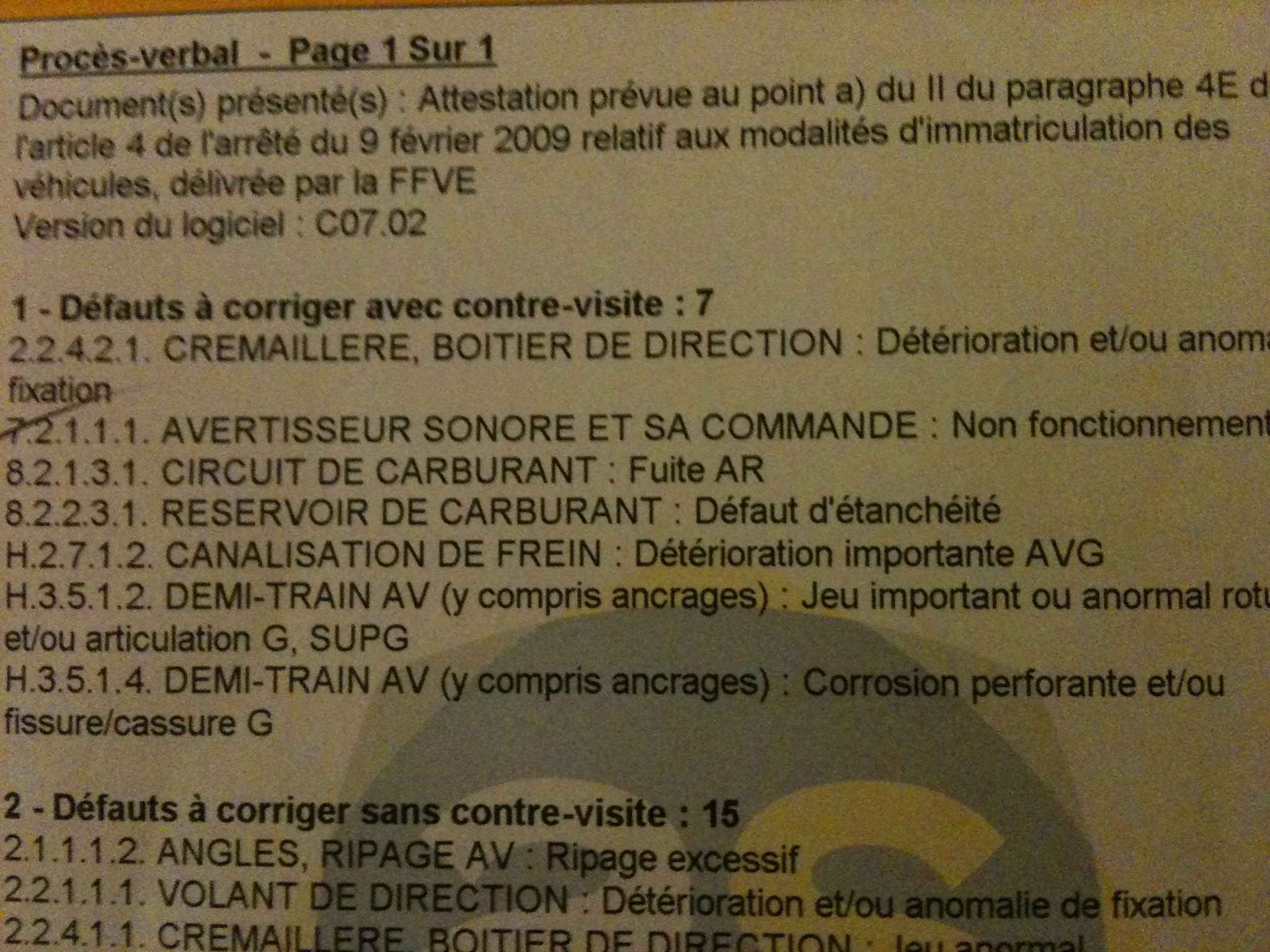 On a emmené le char au contrôle technique pour faire le certificat d'immatriculation avant la future augmentation de 17 %, pour avoir le papier même si je savais quel passerai pas le CT.