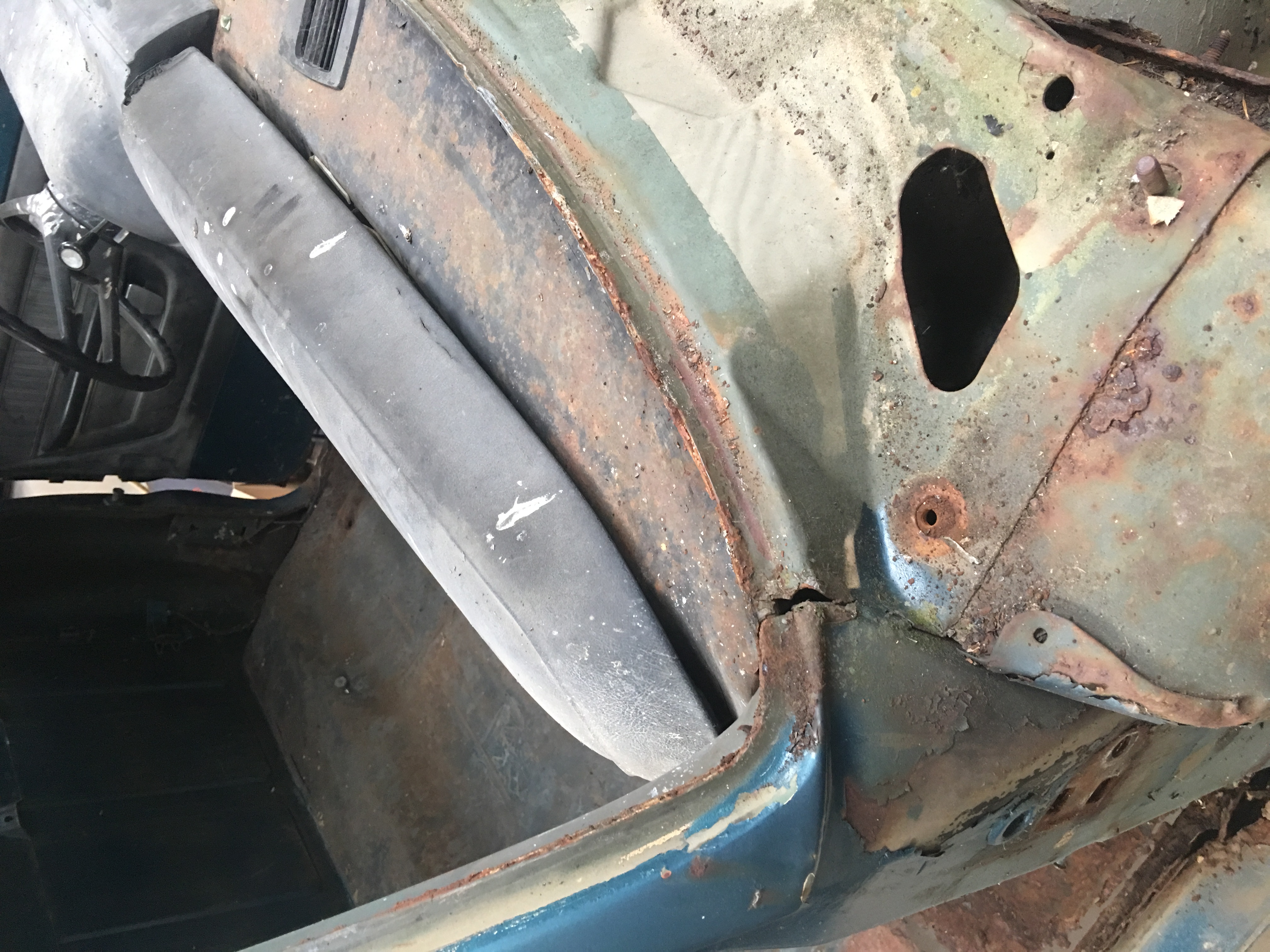 Pour moi c'est sauvable un plancher les bas de caisses support cabine ,pied de cabine si la tole de toit nest pas percé à l exterieur c'est sauvable.avec du boulot certes... tu pourras aussi l'ameliorer.. pour les patch panels regarde chez TABCO /SHERMAN