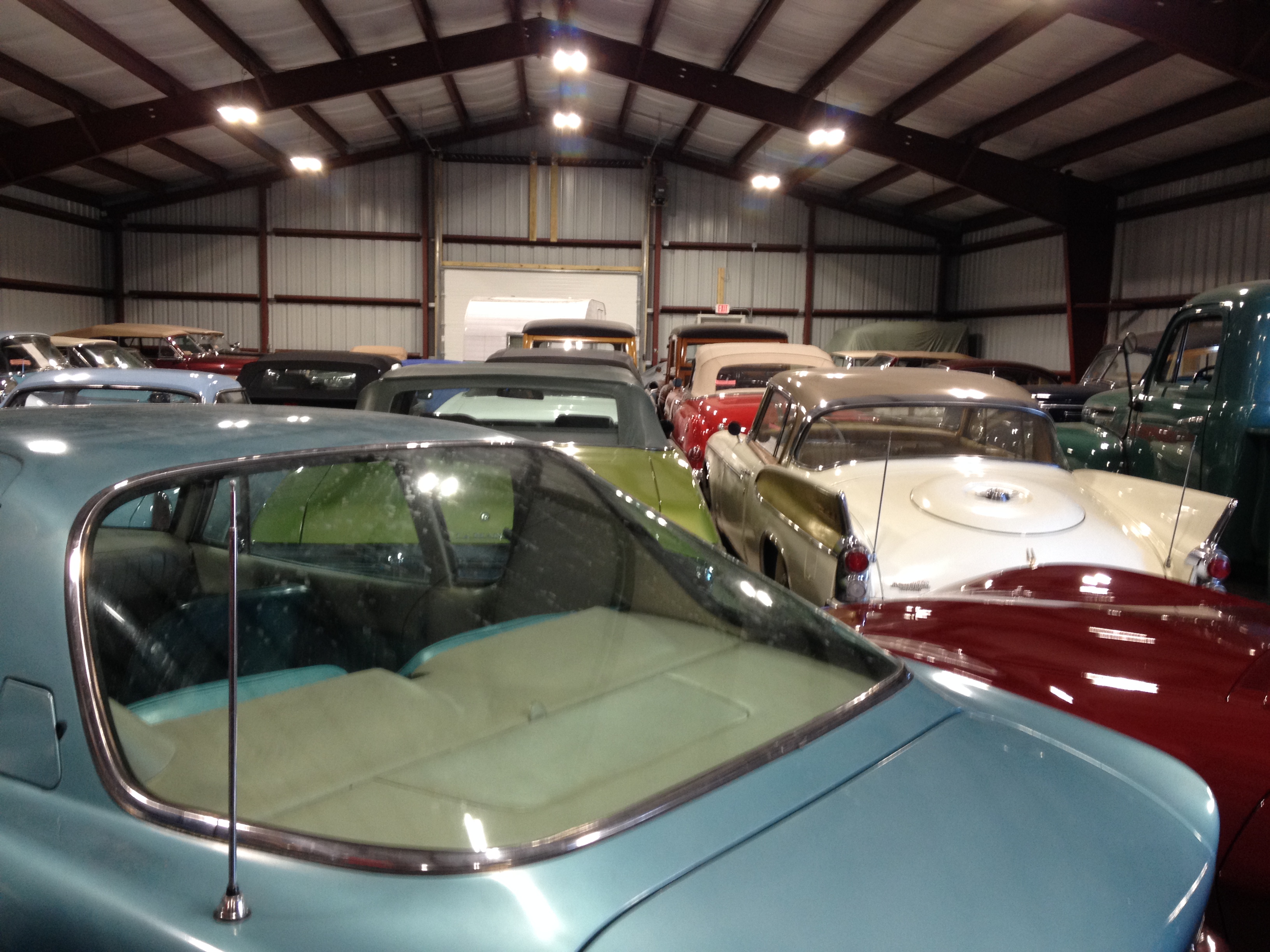 , j'ai pus visiter un des plus grands garage de vielles voitures de l'état, qui fait de l'achat revente et de la restoration de classiques et de muscle cars, je tenais a vous faire partager ca car c'est pas souvent qu'on voit autant de vielles ricaines au même endroit