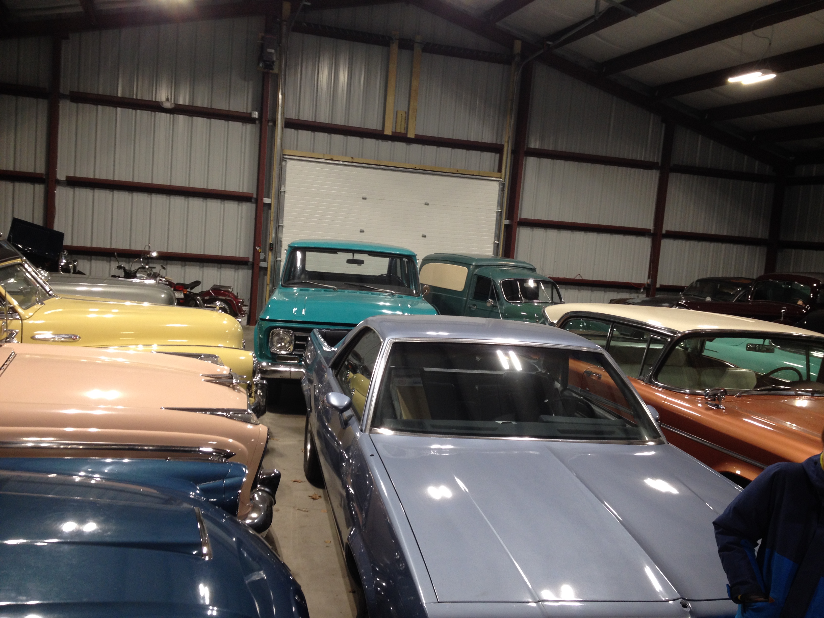 , j'ai pus visiter un des plus grands garage de vielles voitures de l'état, qui fait de l'achat revente et de la restoration de classiques et de muscle cars, je tenais a vous faire partager ca car c'est pas souvent qu'on voit autant de vielles ricaines au même endroit