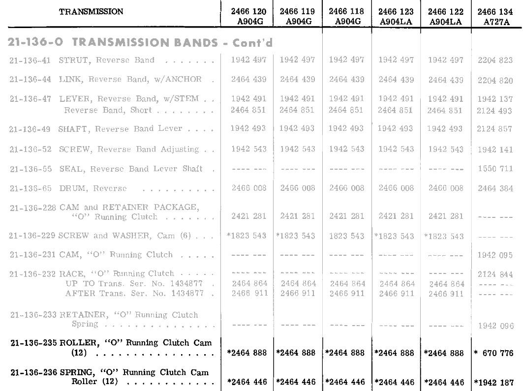 J'ai les références issues de différents "parts manuals", elles sont différentes avant et après 1960 (en 60 y'a les 2 références car la 904 est sorti en 1960 pour les 6 cylindres et la 727 en 62, donc en 60 y'avait encore la "cast iron" ).