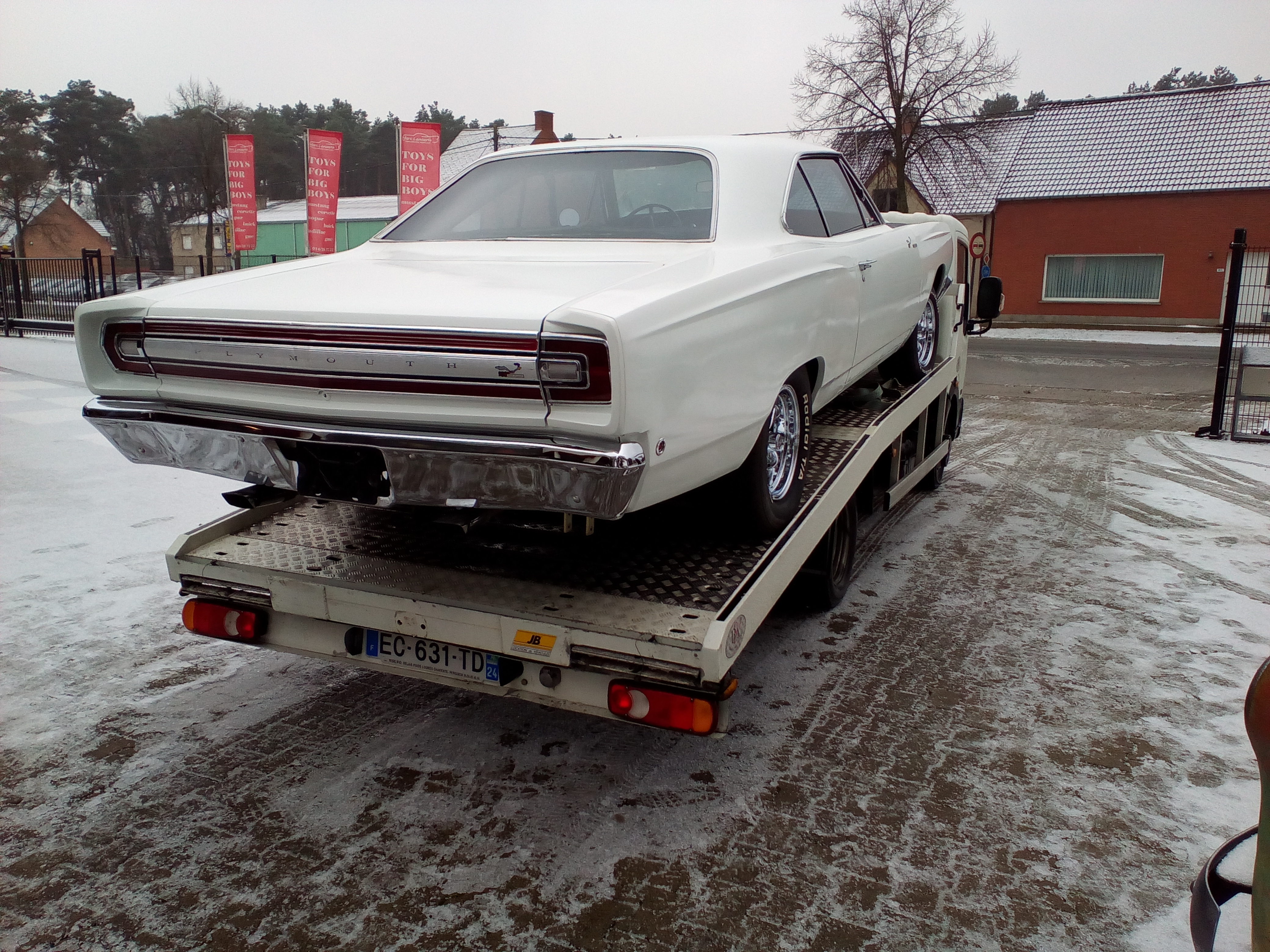 Bonjour à tous, sa y est je l'ai enfin ma plymouth en remplacement de ma chevelle 72, c'est donc une roadrunner de 68 avec un 440ci, je suis allé la chercher en belgique, il y a la peinture à refaire, niveau intérieur et mécanique c'est propre, j'ai prévu d'y mettre un kit de frein à disque à l'avant, dessus il y a un carbu holley sans starter, je voudrais savoir si on peut en rajouter un? voici des photos sur le camion, j'en ferais des plus belle ce week end