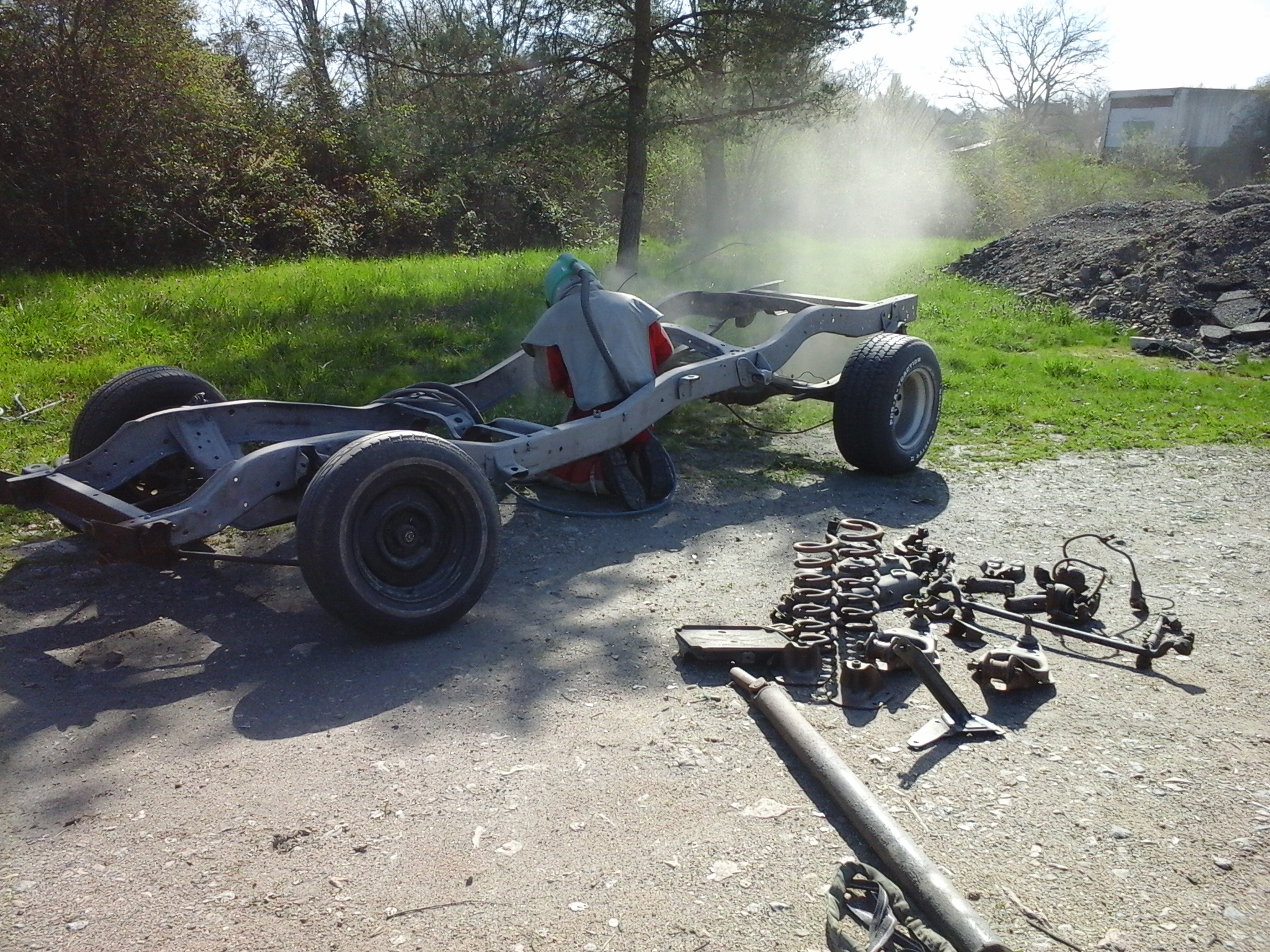 Va falloir attendre un peu toutes les sableuses sont louées et comme je vais louer ça pour un week-end c'est pas trop grave. je vais continuer à preparer mes pieces et le chassis. bonne nouvelle j"ai recuperé des fusées decalées pour dropper l'avant" komyfo"