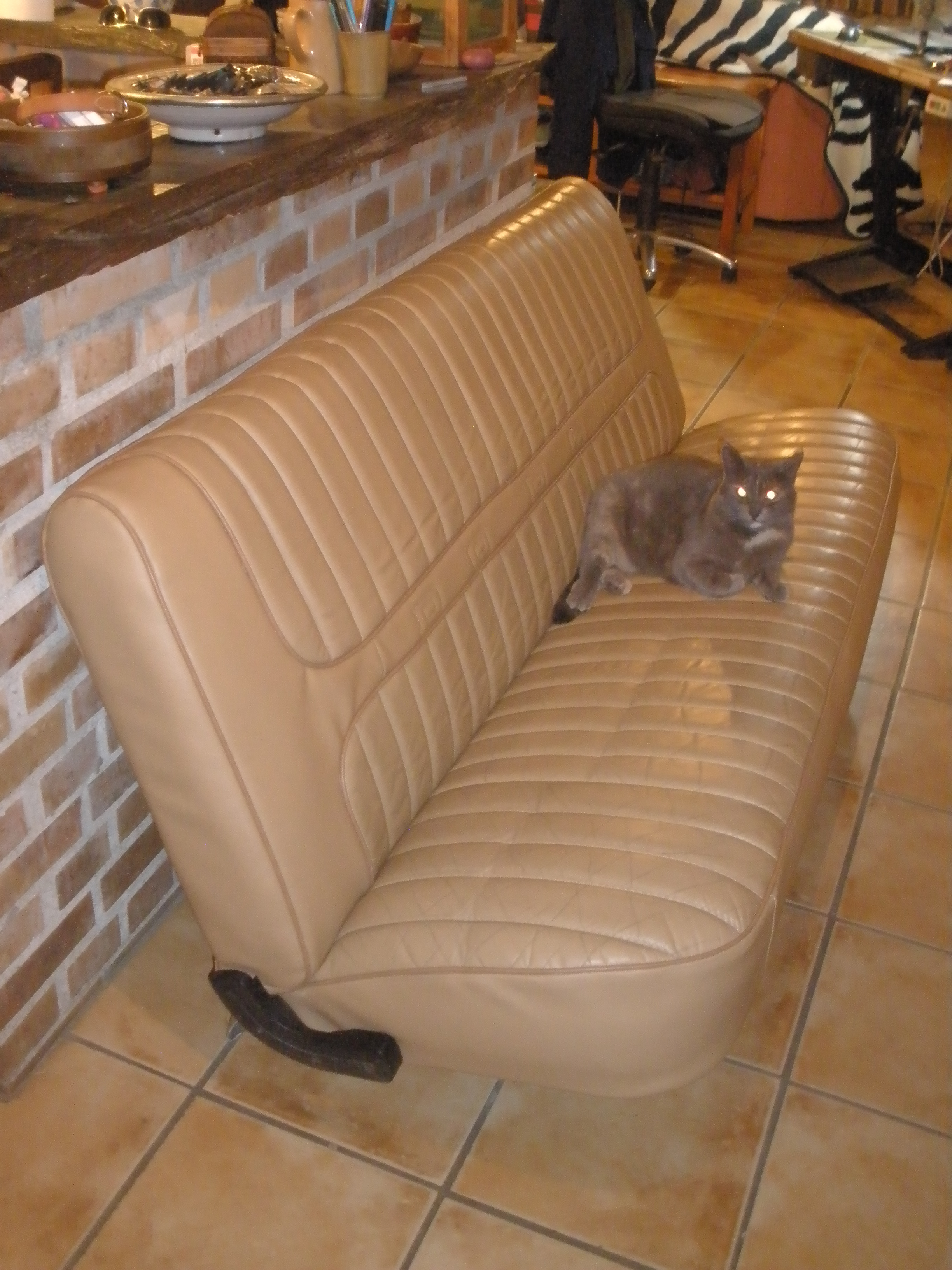 Un petit up pour mon minitruck... malgré mon genou dans le sac j'ai fini ma banquette cuir :dance: Elle a l 'air confortable :clap: :clap: