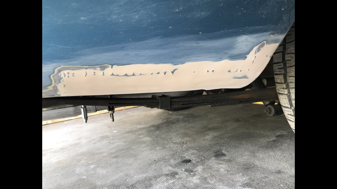 bas de caisse terminé: blackson léger et peint, rouille de surface seulement, la différence de teinte c'est juste la poussière au dessus
