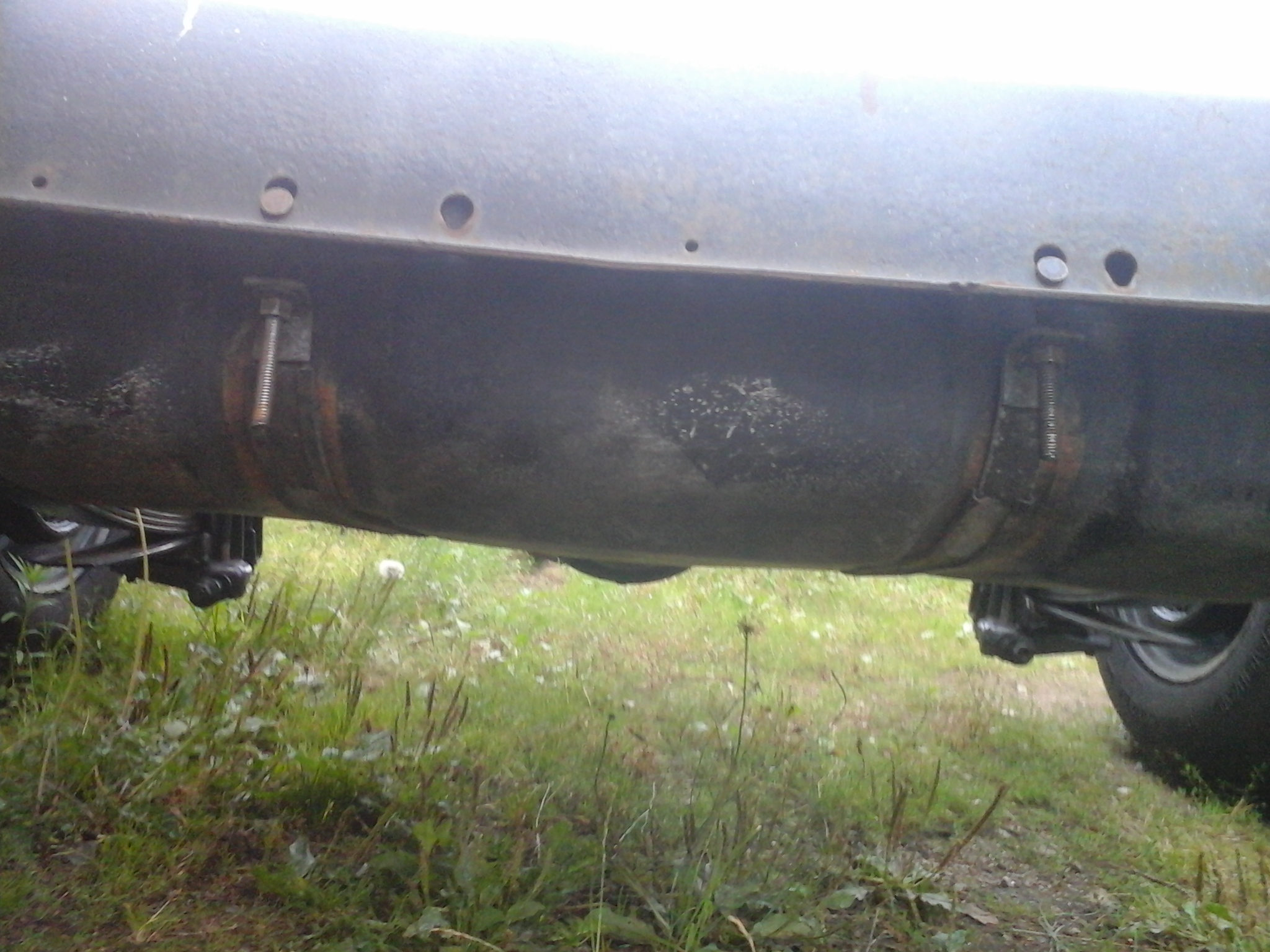 Après avoir bien galéré pour le choix du réservoir il passe de l’intérieur de la cabine au châssis, mais pas possible de le monter comme prévu le long du châssis donc montage d'un réservoir de Ramcharger jai donc récupéré les 2 tôles de support et un réservoir plastique récent. prévu pour l injection Donc ouverture pour contrôle et changement de la crépine, et de la pompe immergé. puis report des trous de fixations des supports et montage du fuel tank.