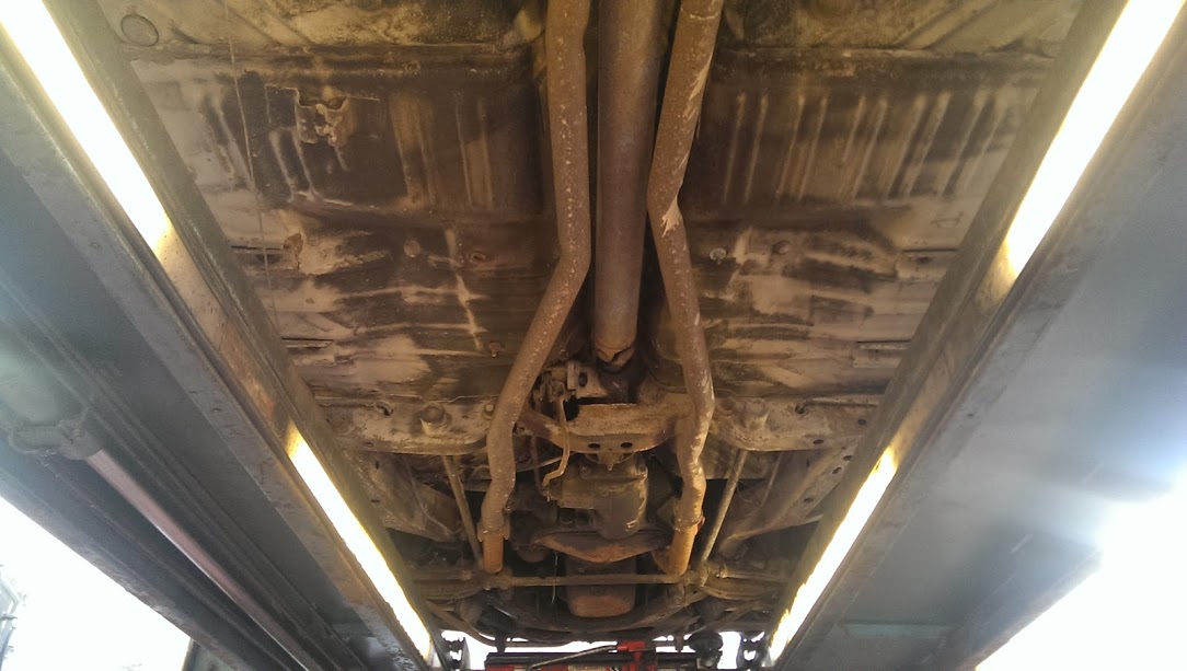 elle est ici montée avec une boite 4 vitesses et la commande au planché qu'il ont troué avec des taules rivetée autour !