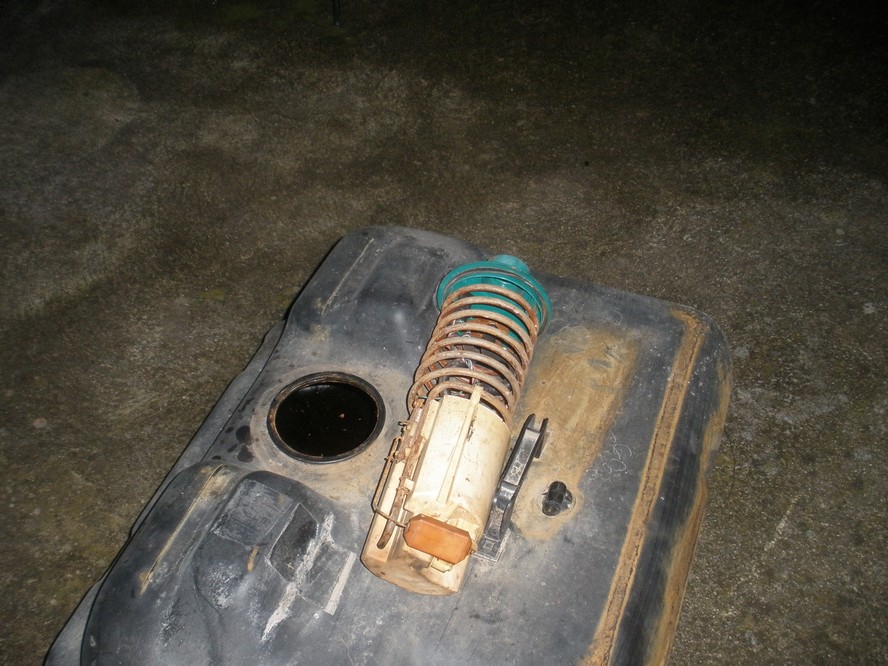 Après avoir bien galéré pour le choix du réservoir il passe de l’intérieur de la cabine au châssis, mais pas possible de le monter comme prévu le long du châssis donc montage d'un réservoir de Ramcharger jai donc récupéré les 2 tôles de support et un réservoir plastique récent. prévu pour l injection Donc ouverture pour contrôle et changement de la crépine, et de la pompe immergé. puis report des trous de fixations des supports et montage du fuel tank.