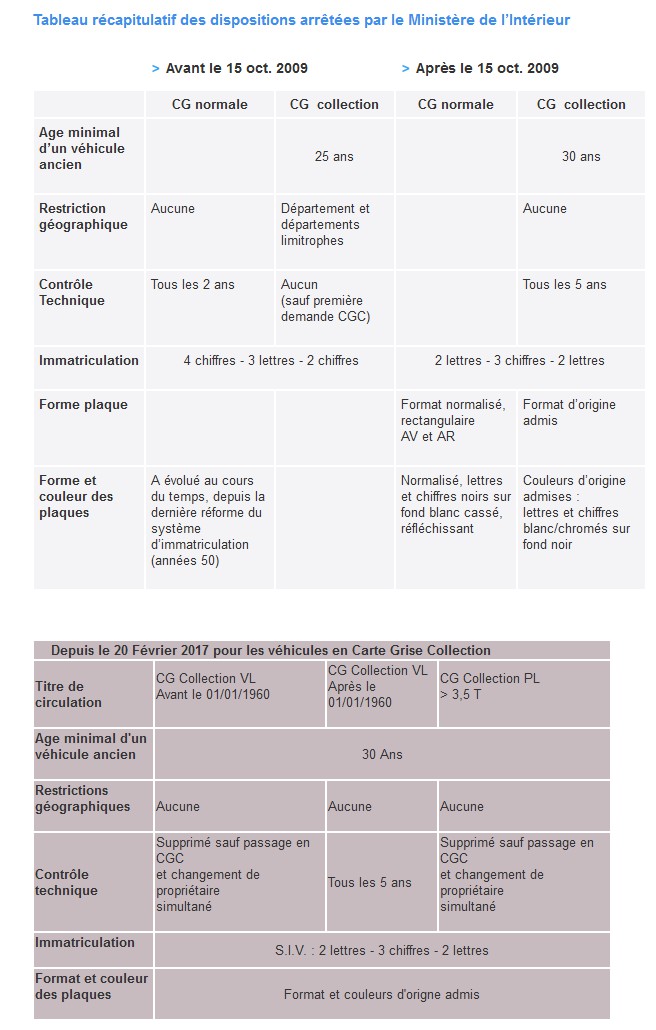 Je n'en suis pas sûr, la FFVE tient aux lettres blanches/argent sur plaque noire (si on le veut) pour tout ce qui est CG collection , ce qui est aussi, le gouvernement devrait le comprendre, un excellent moyen (si c'était obligatoire pour les CGC) de contrôler / vérifier etc.. qui est en CGC ou CGF