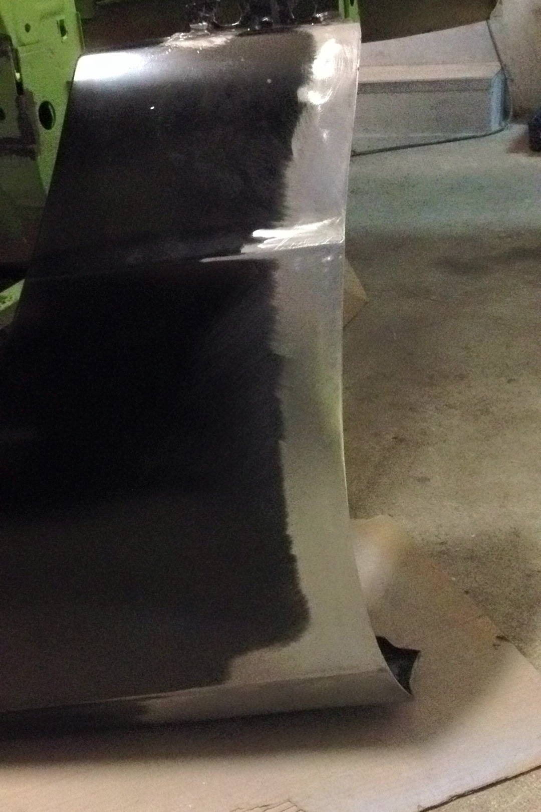 En fait, le galbe de l'aile ne suivait pas celui de la porte passager, en exagérant on pouvait passer la main etre la porte et l'aile et touché l'intérieur de l'aile en gros (je caricature bien sur). Au niveau du renfort de l'aile celui qui part d'en haut et qui redescend au niveau de la fixation sur le bas de caisse on s'est aperçu que la peau de l'aile était soudée plus en retrait que celle d'origine. Du coup on a dessoudé la peau du renfort en bas tirée dessus et ressoudé. Après ça le galbe de l'aile suivit bien celui de la porte. MAis ce n'est pas finit lol