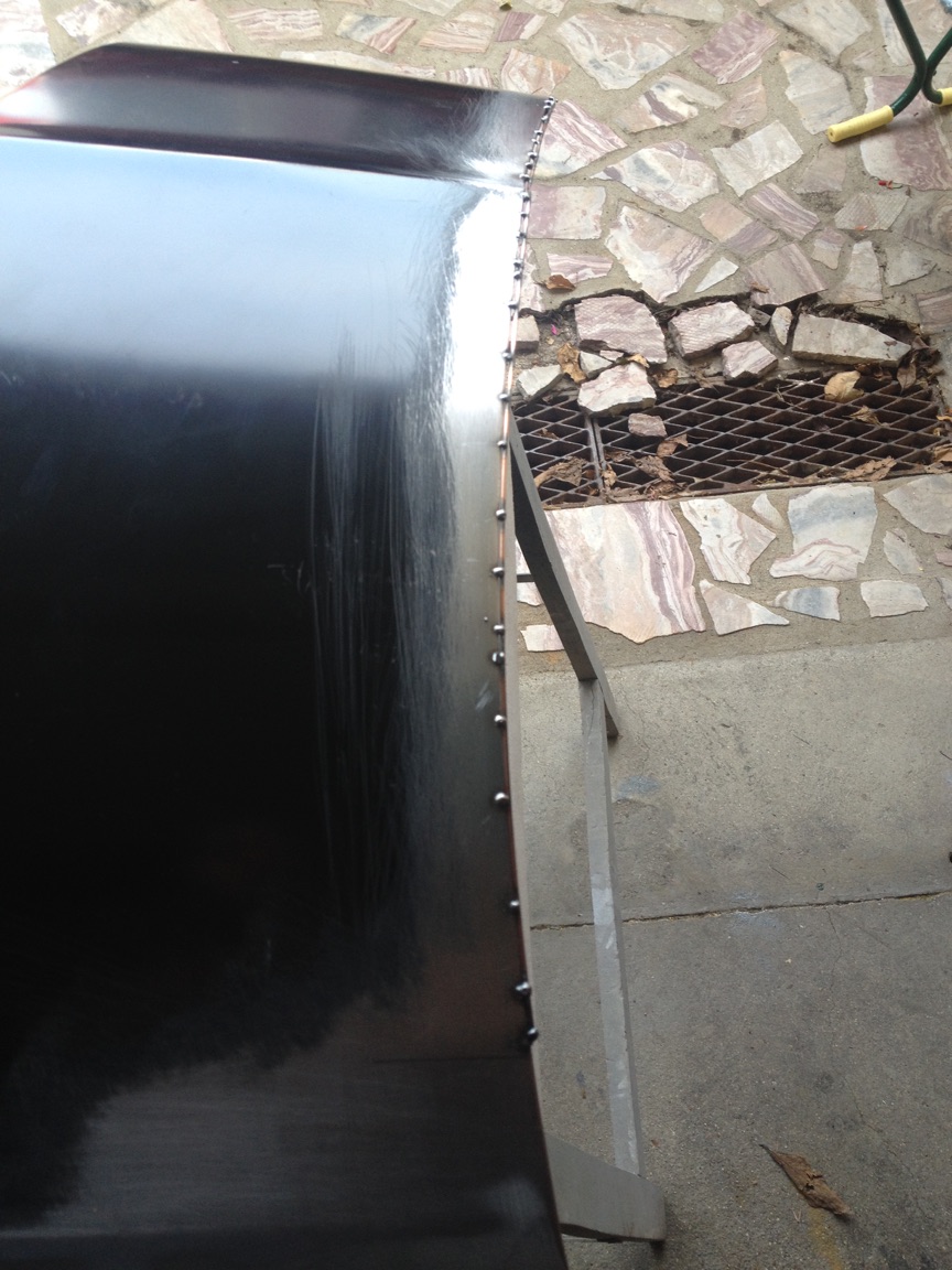 cette baguette on va s'en servir pour faire une "extension' d'aile. On l'a placé sur l'arête de l'aile, puis pointée en ajustant l'écart en fonction de la taille du gap avec la porte. ensuite finir le soudage et meulage.