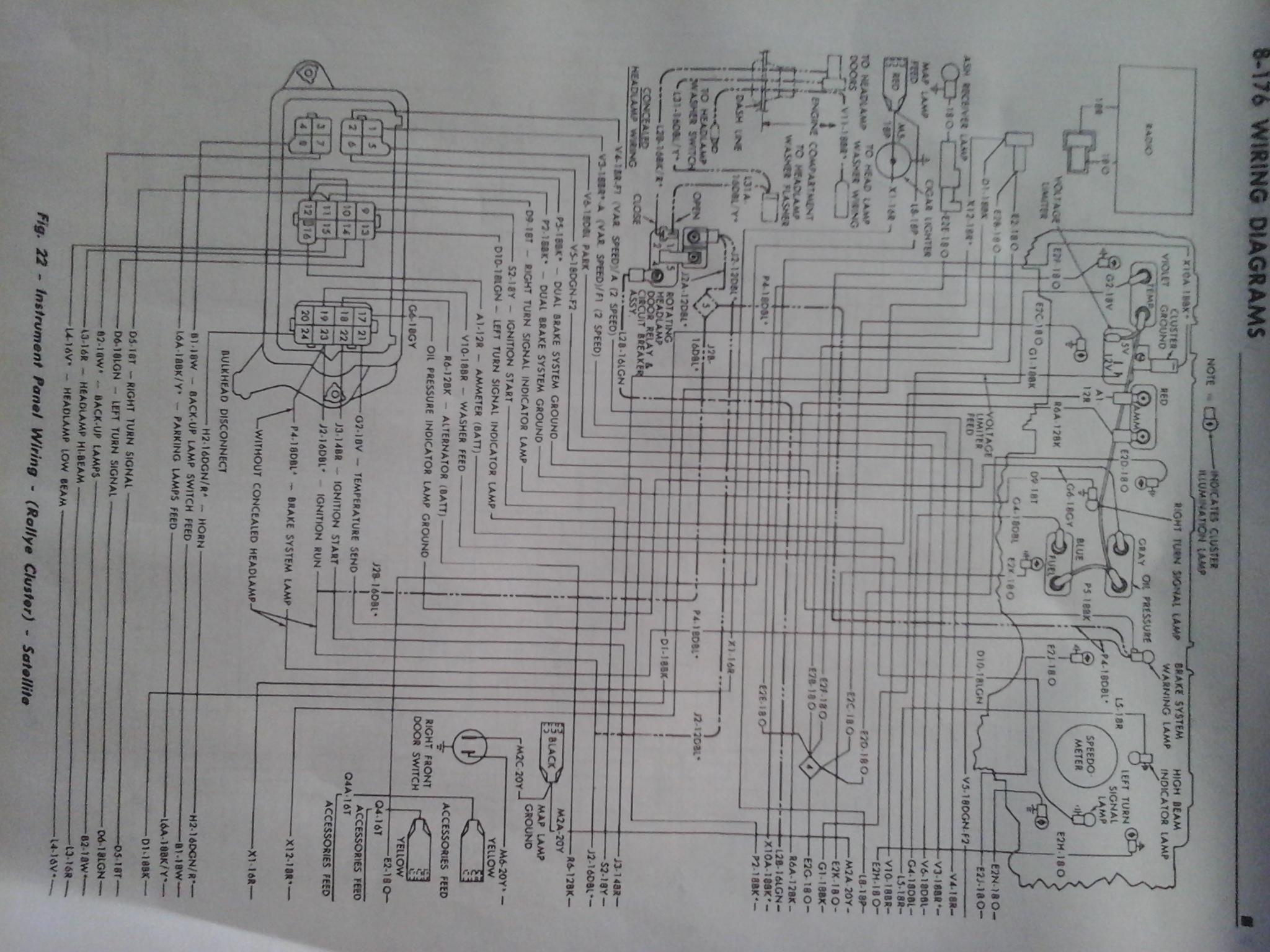Laisse tomber, c'est bon j'ai les schémas (qui ne sont pas les tiens mais qui sont bien 1971 Satellite std cluster, y'a aussi le rallye cluster, tu as lequel ?)