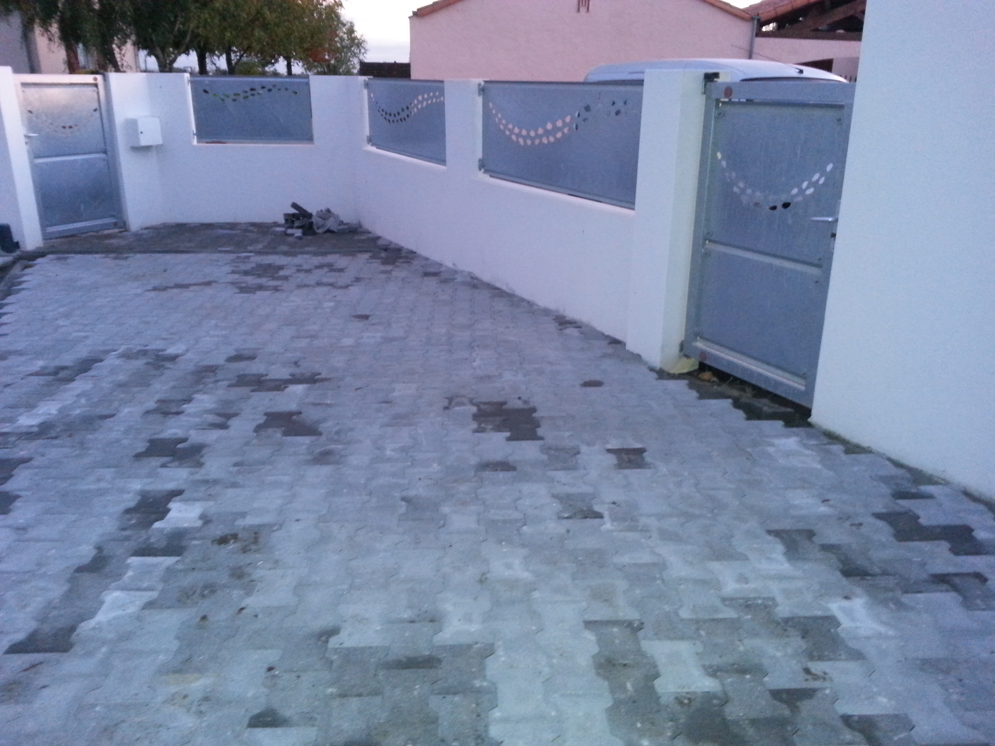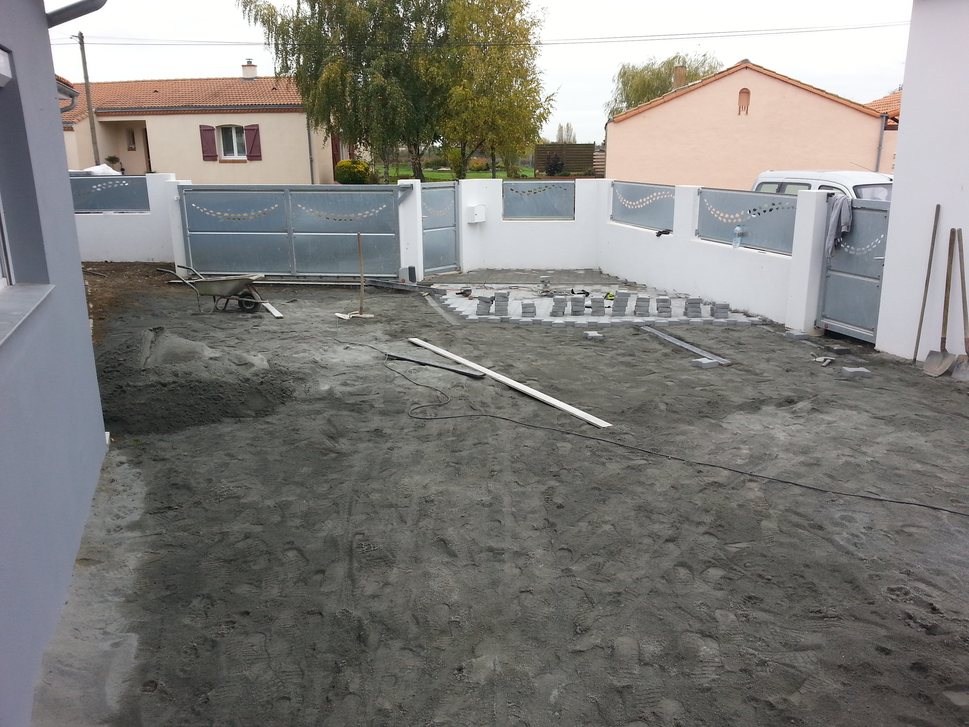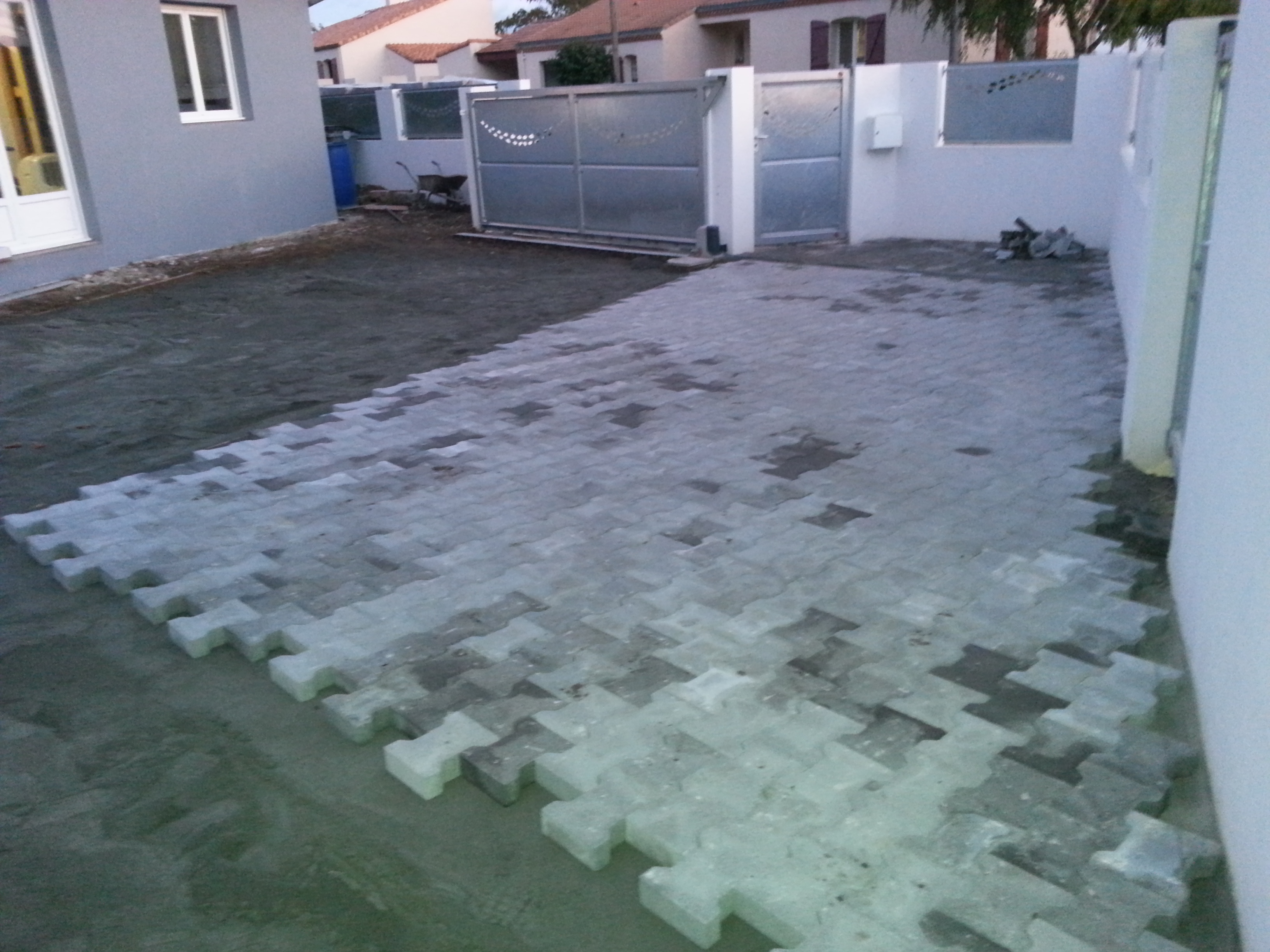T'aurais du poser un géotextile en-dessous sinon l'herbe va pousser entre tes pavés. :mrgreen: