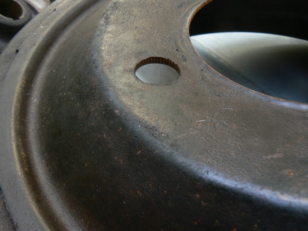 De plus le tabour se centre avec le centre du moyeu: on voit sur ma photo que le centre du moyeu est "propre" c'est à dire sans rouille.