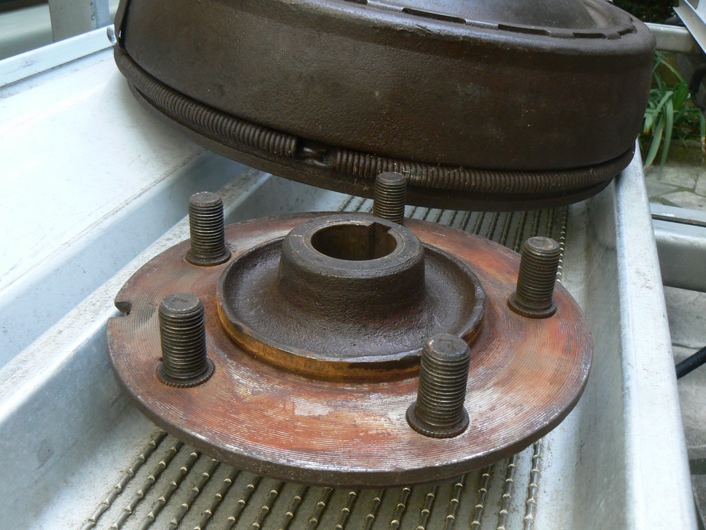 J'ai eu ça sur ma Plymouth '58, un des deux tambours s'est séparé du moyeu. A première vue, ça peut sembler une bonne chose (c'est plus facile pour entretenir les freins), mais en fait cela veut dire que les goujons sont dessertis. Et que donc, il y a un petit peu de jeu axial entre le tambour et le moyeu. Et ça c'est pas une bonne chose.
