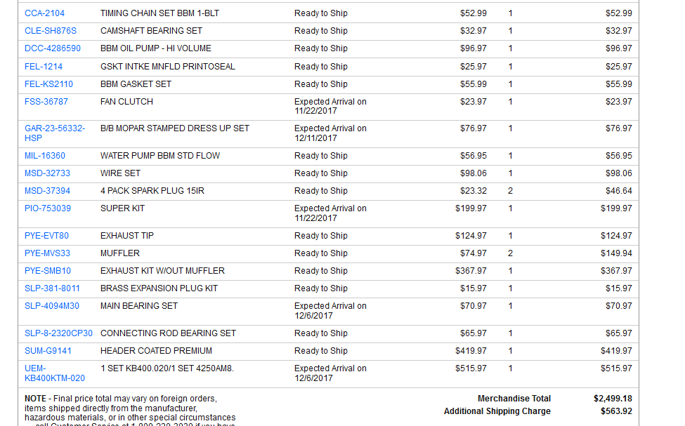 à part ça, j'ai commandé mes pièces pour mon moteur;