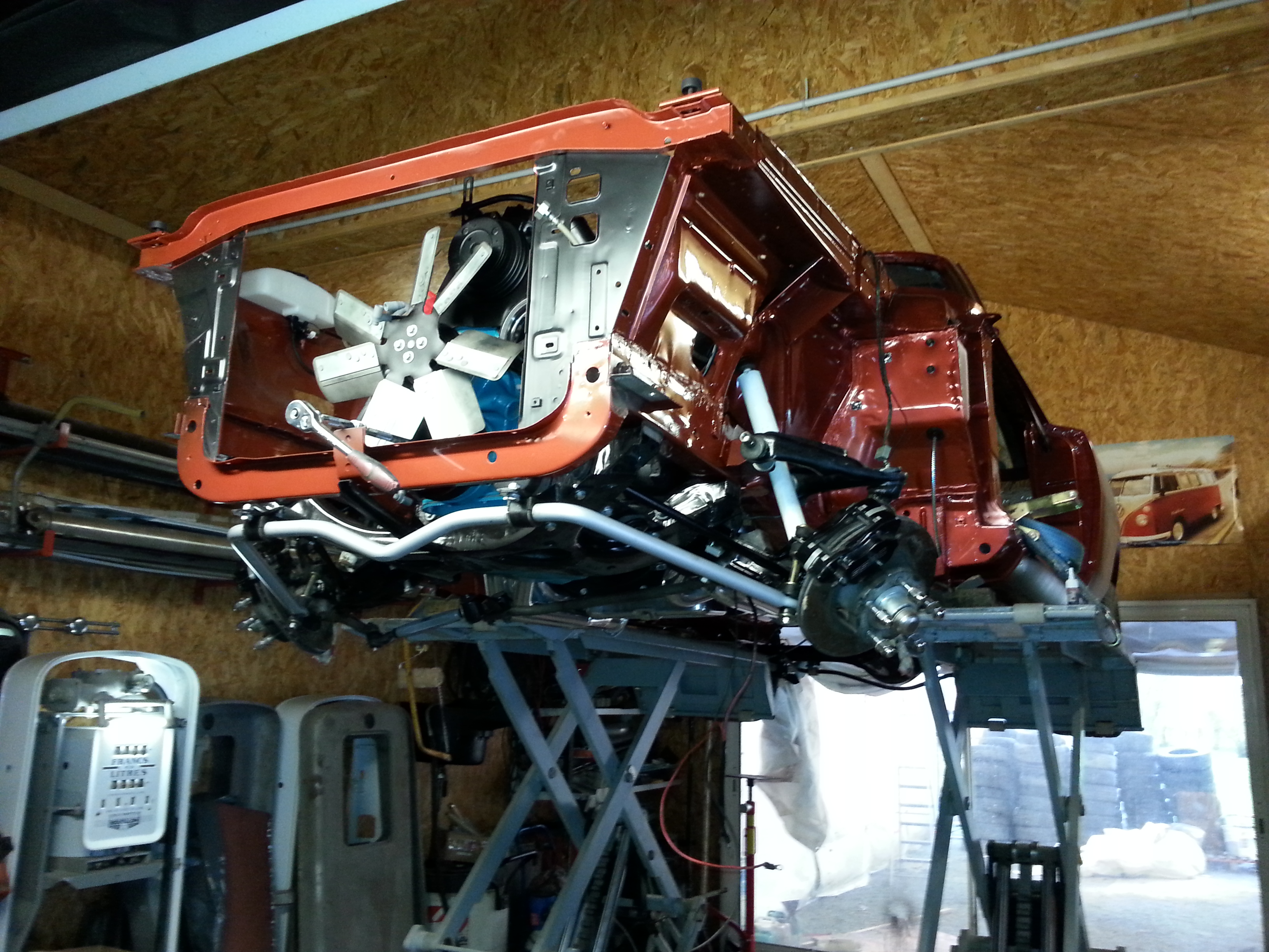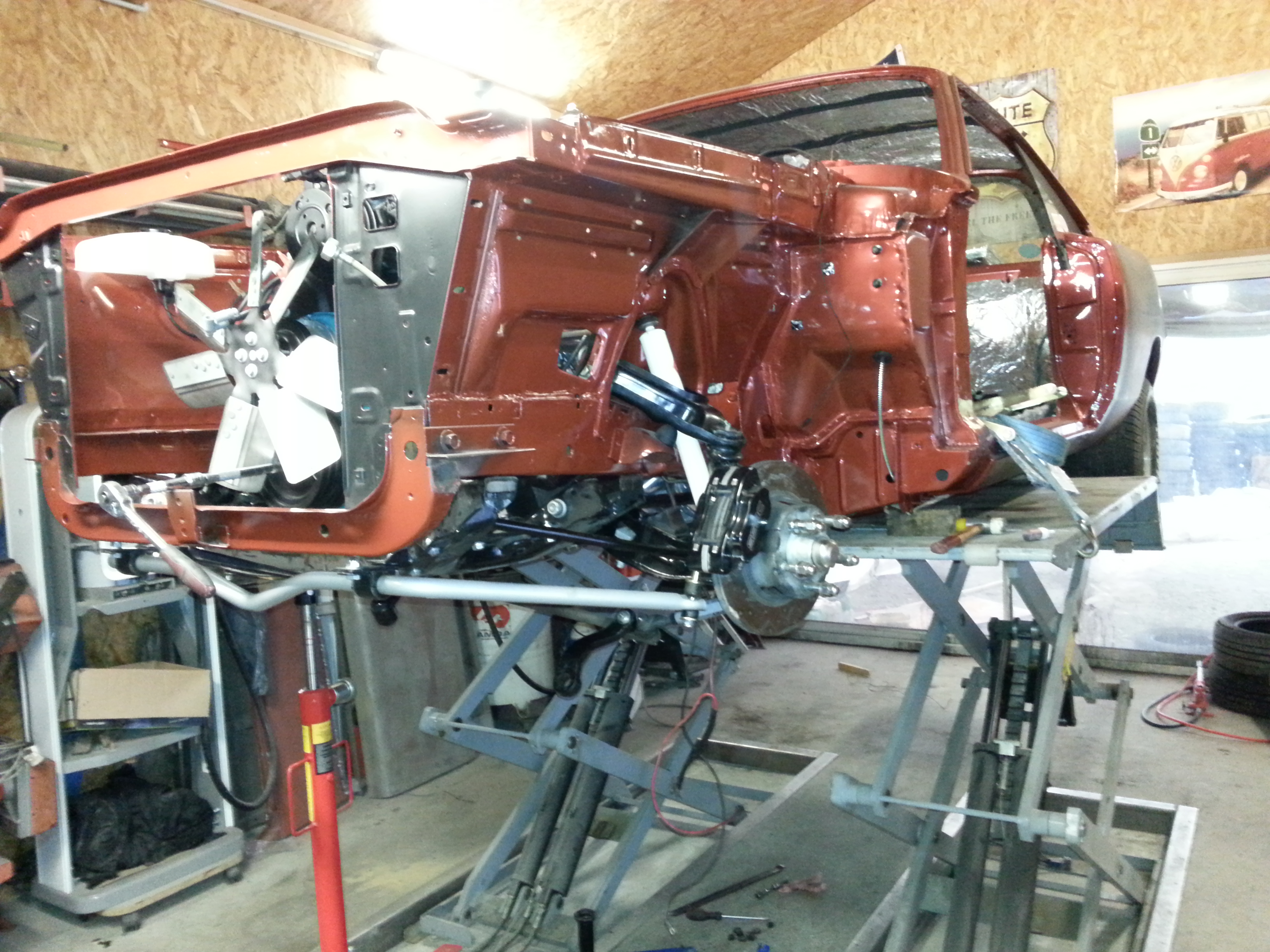 remontage de l'arbre de transmission, flexibles, purge des freins, réglage approché de hauteur de caisse et hop sur ses roues!