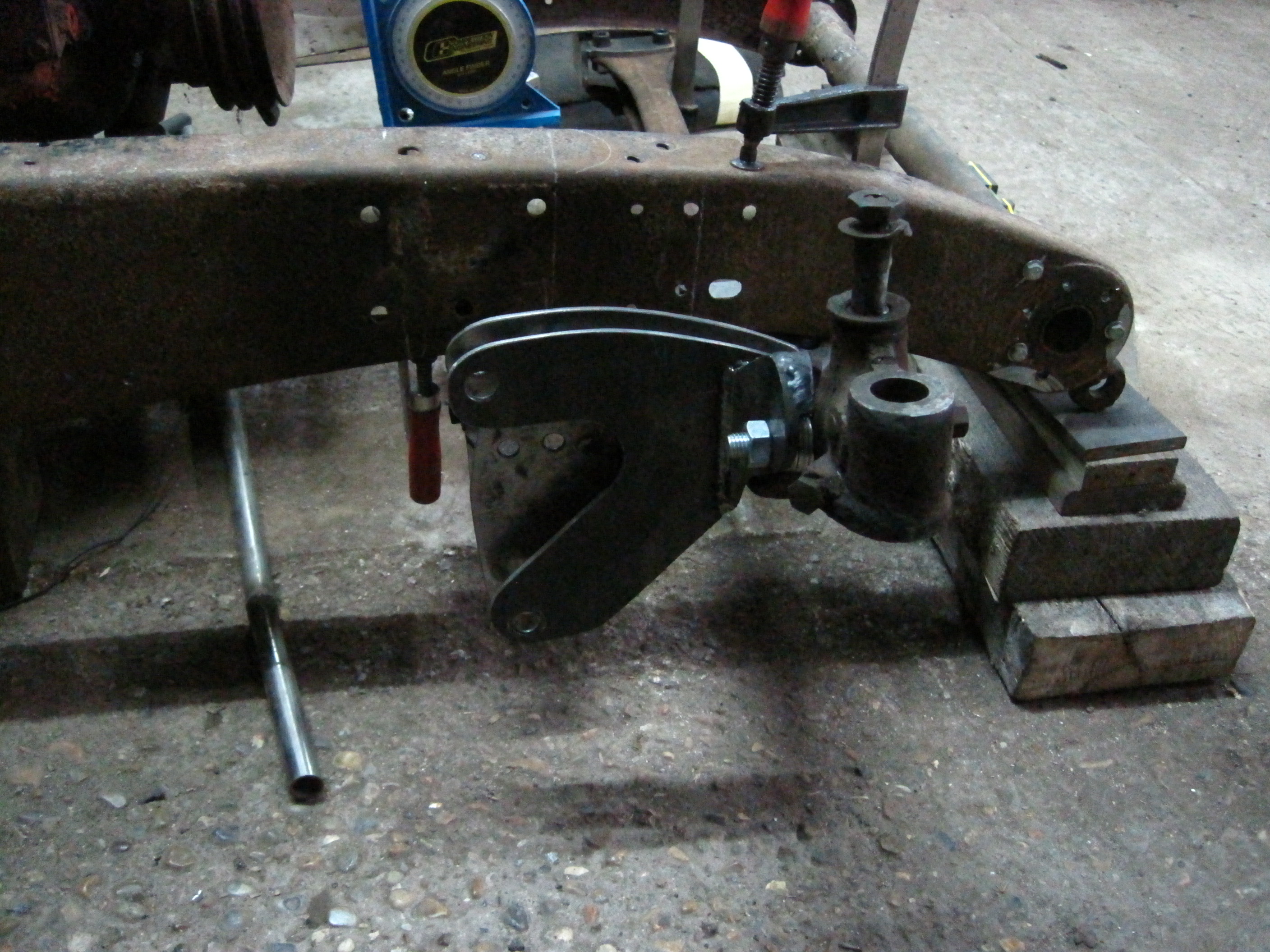 Essaye d'augmenter l'intensité pour tes soudures :wink: J'ai autrefois acheté une ac4 pour en faire un hot rod, j'avais gardé que la cabine ( coupé derriere comme la plupart), je voulais faire un chassis sur mesure, mais celui d'origine si prete bien aussi, et donne un autre style! Tu as prevu quoi comme freinage, moyeu? Vu la taille des fusées j'avais usiné la fusée pour mettre un moyeu, freins, jante d'une autre voiture
