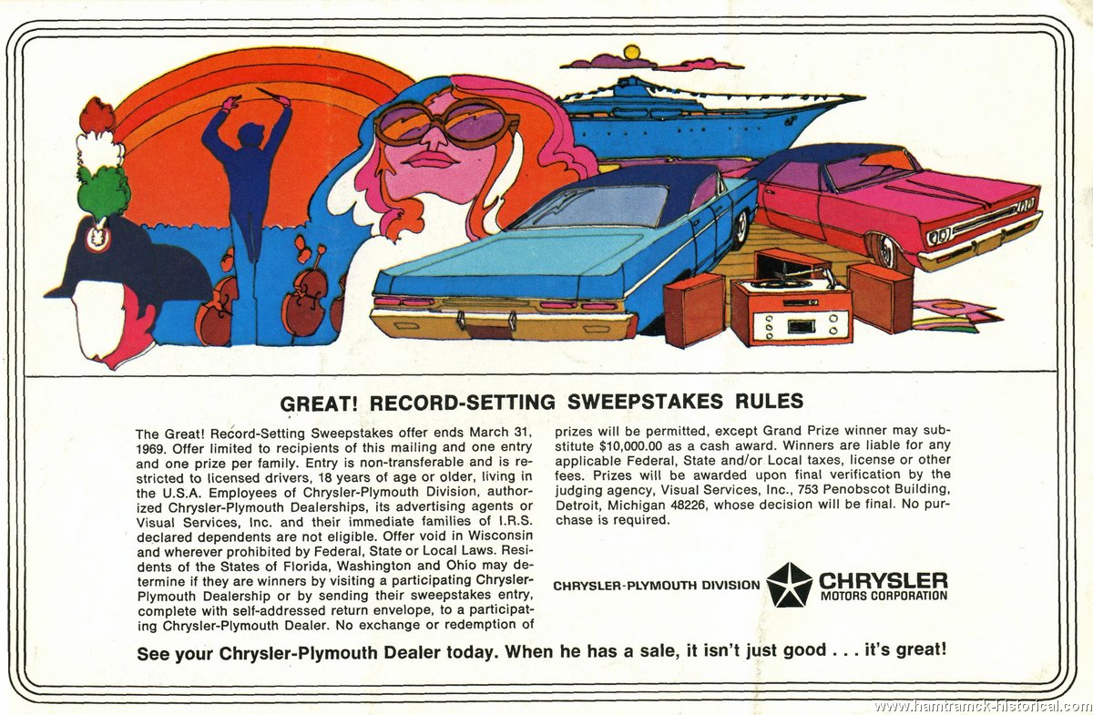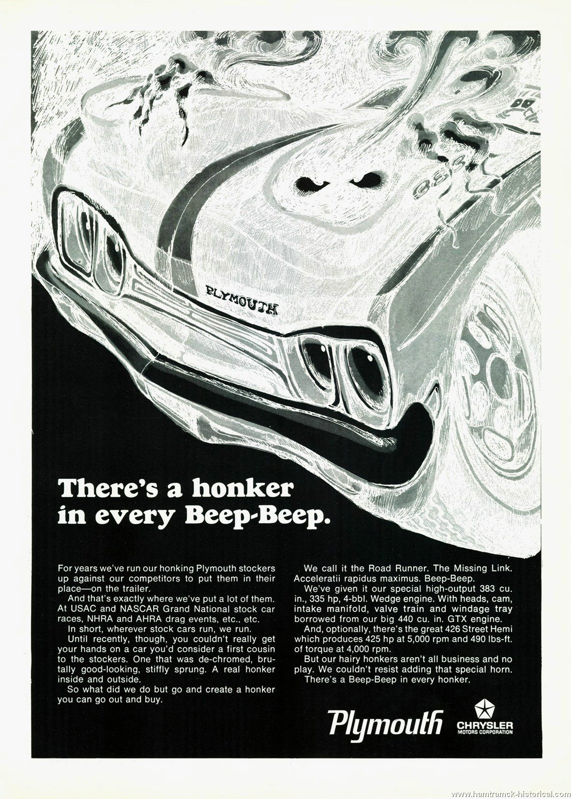 Les pub psychédéliques ou "cartoonesques" sont surtout le fait de Plymouth (chez Dodge ils étaient déjà un poil plus sérieux).