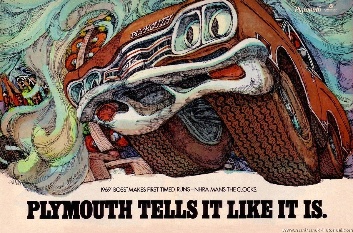 Les pub psychédéliques ou "cartoonesques" sont surtout le fait de Plymouth (chez Dodge ils étaient déjà un poil plus sérieux).
