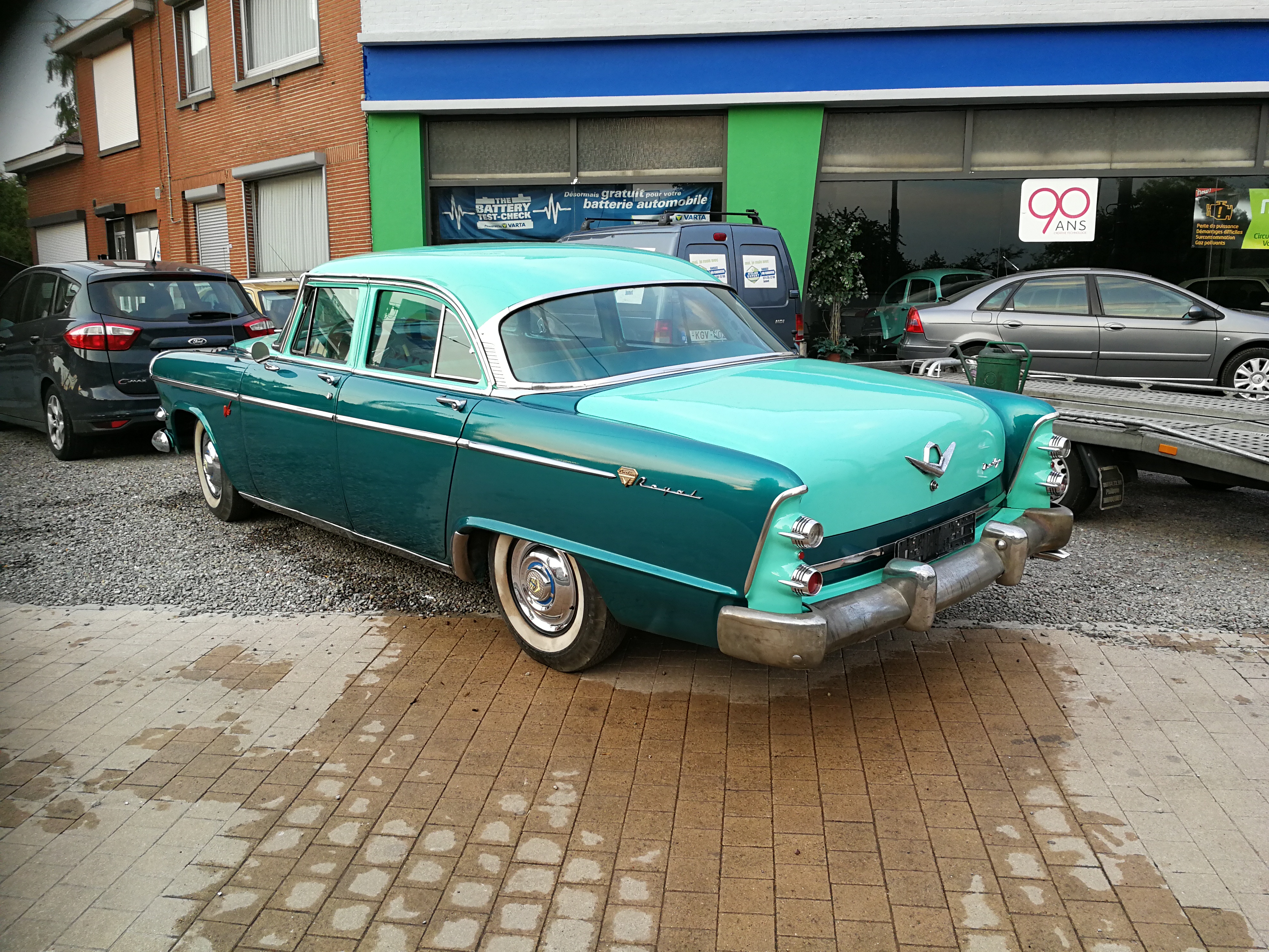 C'est donc une dodge custom royal de 1955 avec le 270ci (4.4L) V8 hemi super red ram de 193cv, la peinture a été faite il y a 3 ans, l'intérieur pareil, frein complet et échappement complet neuf, il reste à finir le ciel de toit, le pare choc arrière à chrômer et le plus délicat le faisceaux électrique :)