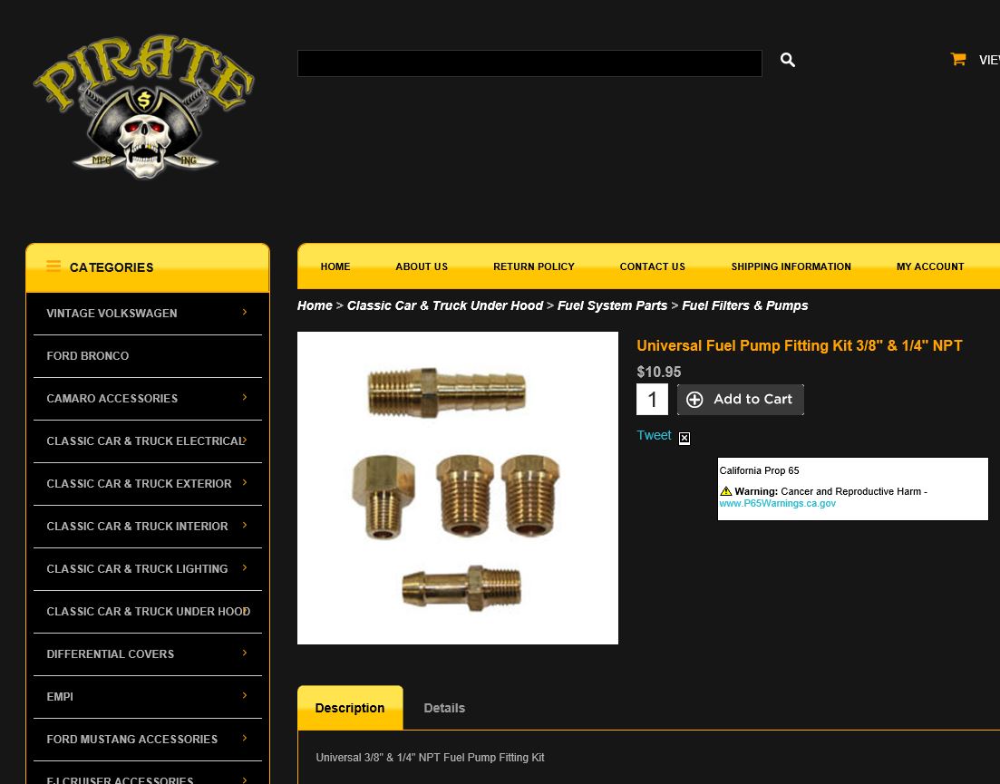 j'avais trouvé celui-ci :Tady a écrit :Sur Ebaymotors tu tapes « fuel Line brass » et si possible le diamètre genre 3/8 ou autre, ça en sort il faut fouiller