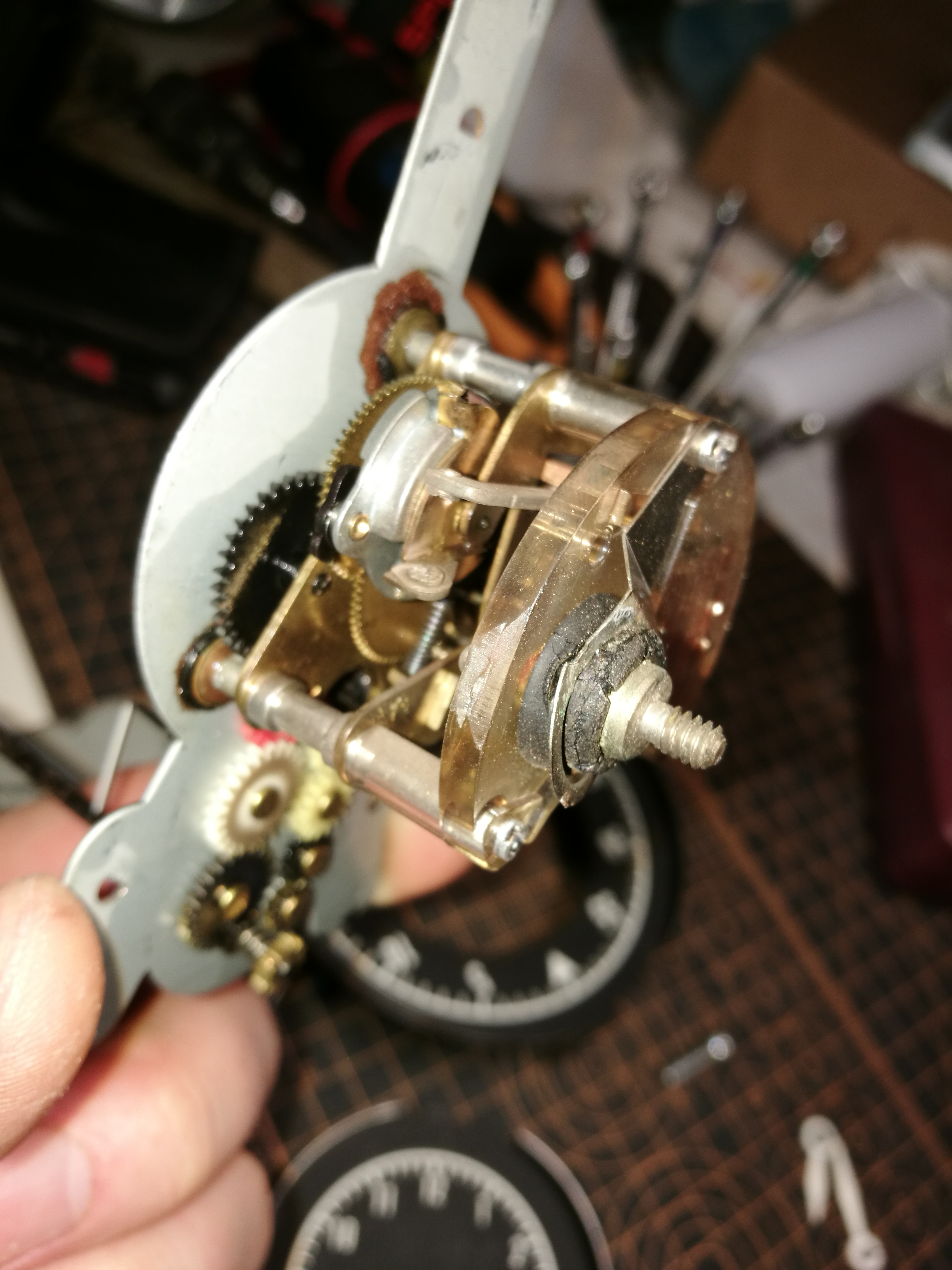 Autre point important, ma T-56 n'a pas de pignon pour une sortie compteur mécanique. Uniquement un capteur à Effet Hall. J'ai donc bricolé un arduino avec un petit board. De fait je mesure la fréquence de rotation de l'arbre de sortie avec le capteur à effet hall. Je passe par ensuite par une fonction de transfert pour piloter un moteur DC réducté qui entraîne l'odomètre. J'en profite aussi pour autoriser le passage de la marche arrière via un mosfet qui pilote l'électroaimant sur la boîte. Je sais que ce genre de boîtier existe pour quelques centaines de $ mais c'est encore une fois le plaisir de faire soi-même. Le coût de revient doit être en dessous de 50 €. J'ai ensuite fait une platine électronique en ordre ainsi qu'un boîtier imprimé 3D pour recevoir le tout mais point de photo sous le coude...