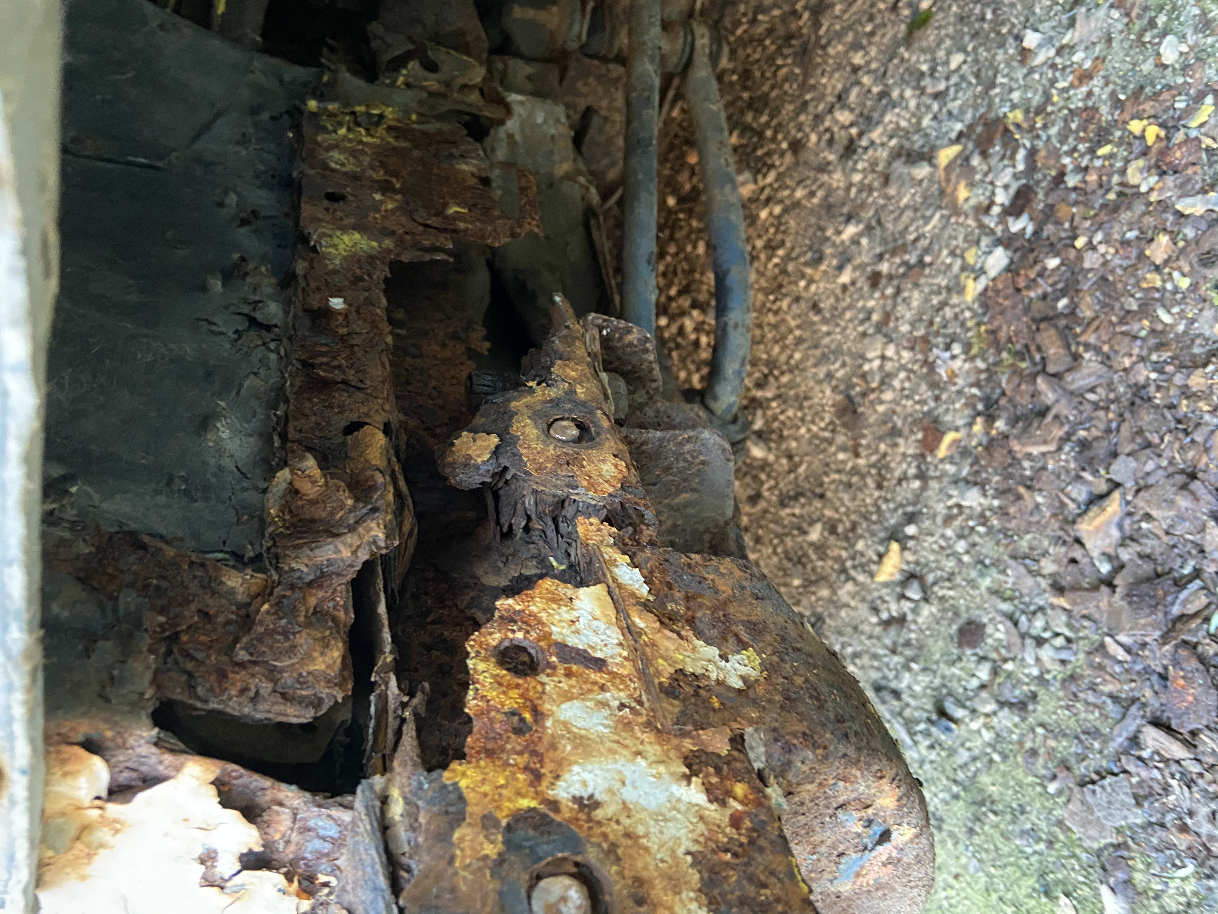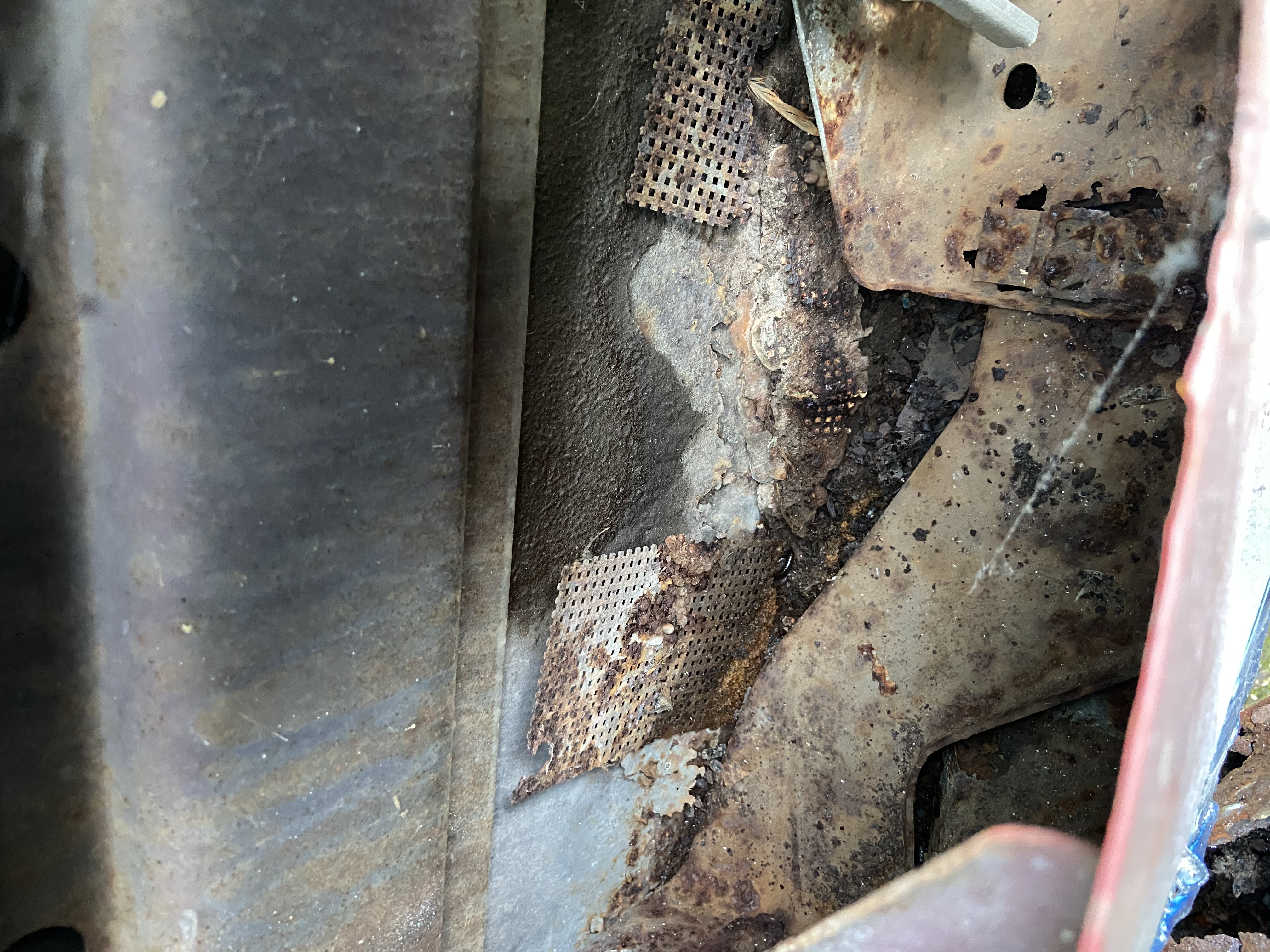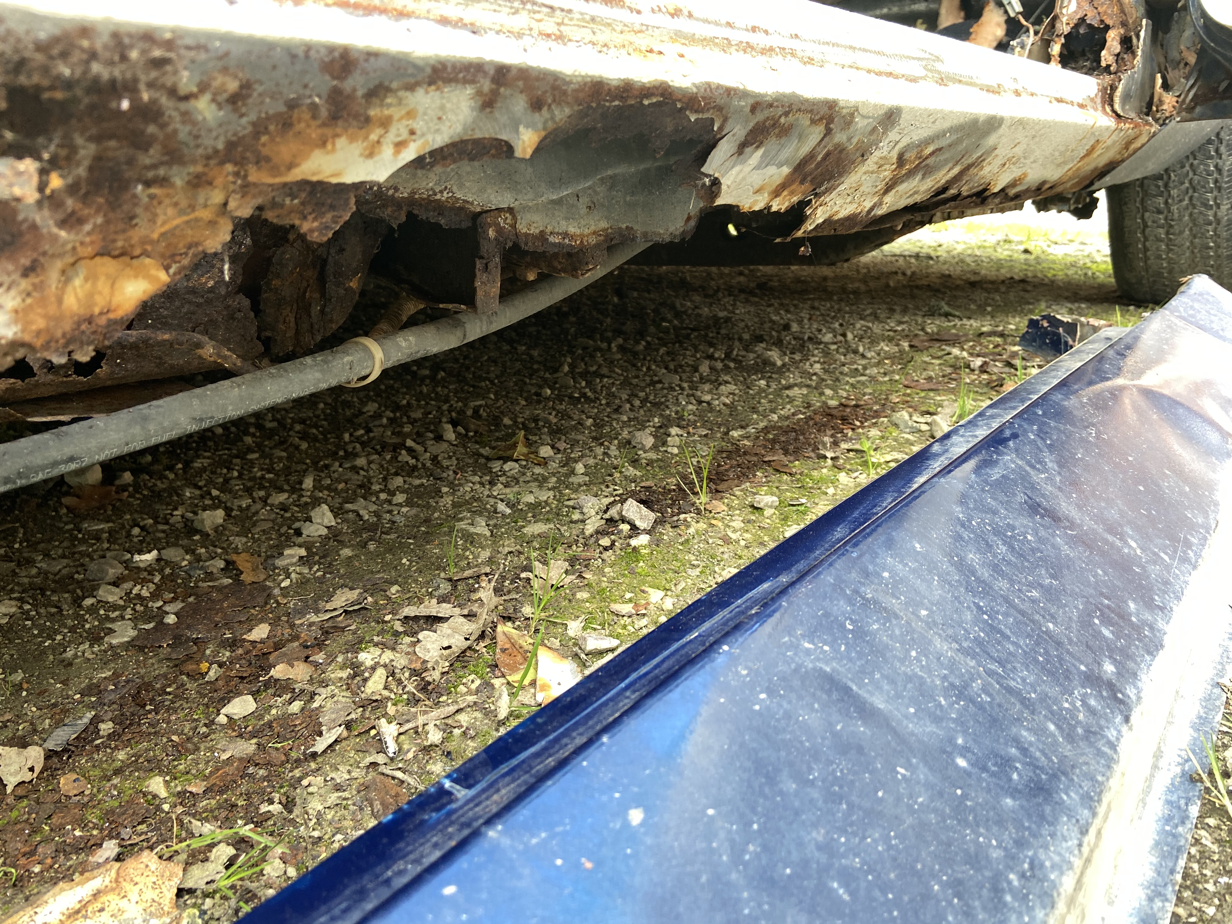 Résultat un bas de caisse "récent" poser par dessus l'ancien le tout fixer au rivet , une quantité de synto pas croyable ( par endroit bien plus d'1cm )