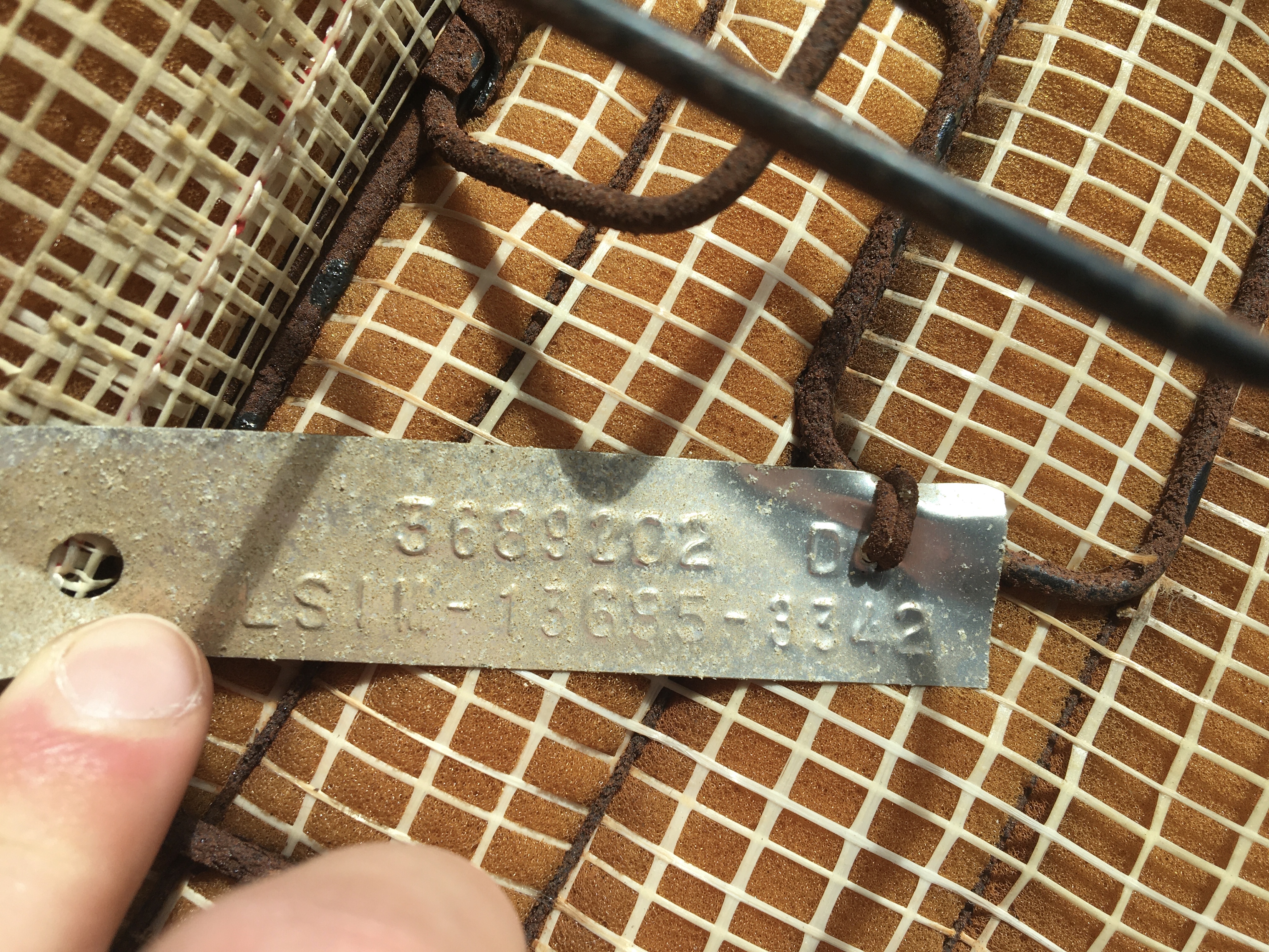 Il me semble que la plaque métallique c'est tout simplement le part number de la banquette (3689202) avec quelques infos en plus.
