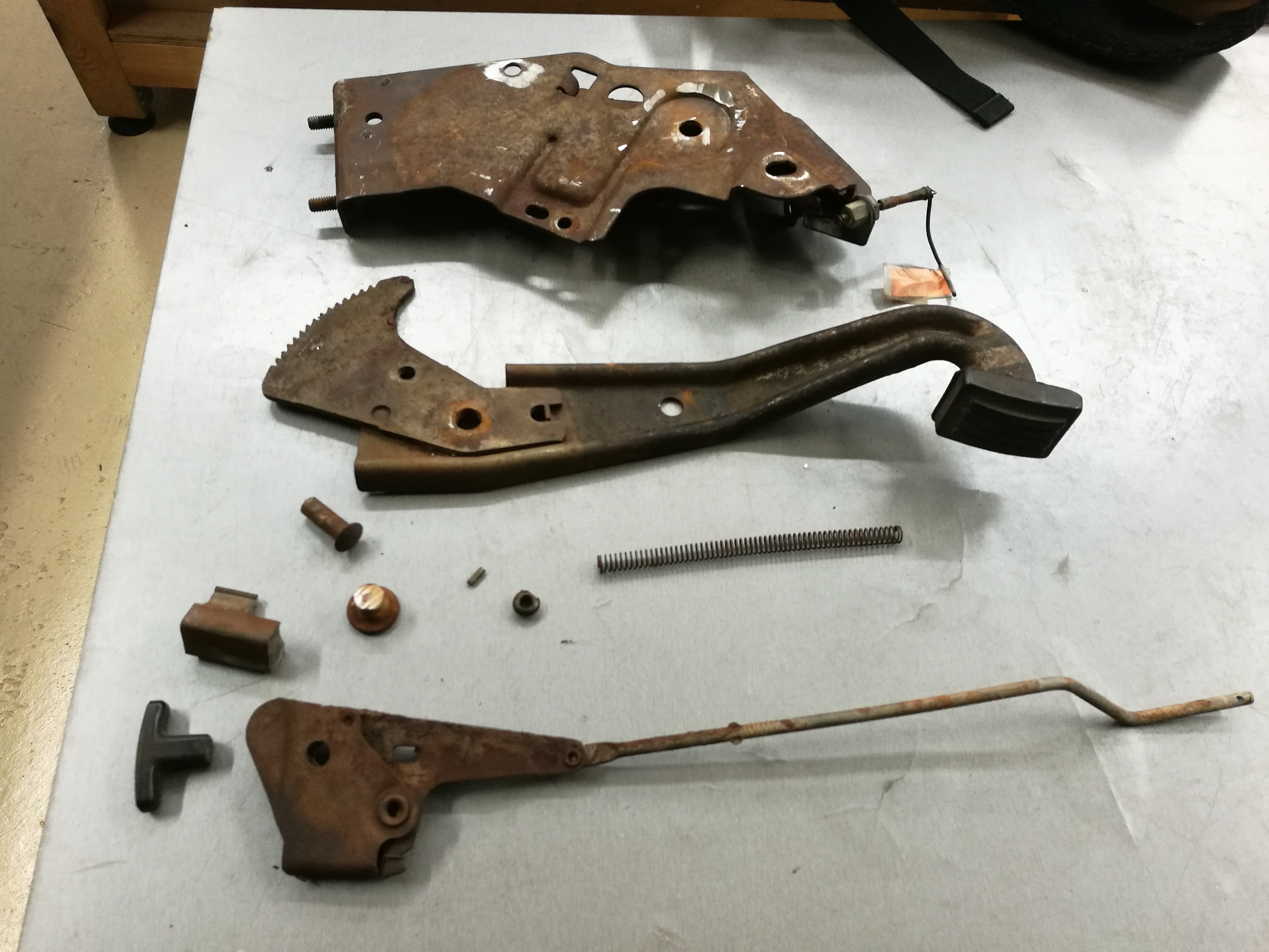 Restauration d'autre petits trucs, frein à main, par-feu pont arrière.. A noter qu'il me manquait le trhust block dans le pont. J'en ai donc profité pour passer en "green bearing" (roulement à bille). Je sais que mon diff a mauvaise mine, mais je pense qu'il fera le taf pour les premiers tours de roue. Et puis je passerai probablement sur un autobloquant plus tard.