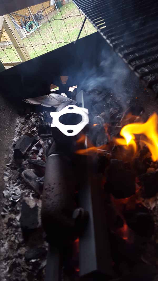 - une fois la soudure terminé, j'ai fermé le BBQ en laissant le collecteur à l'intérieur pour qui redescende en température tranquillement,