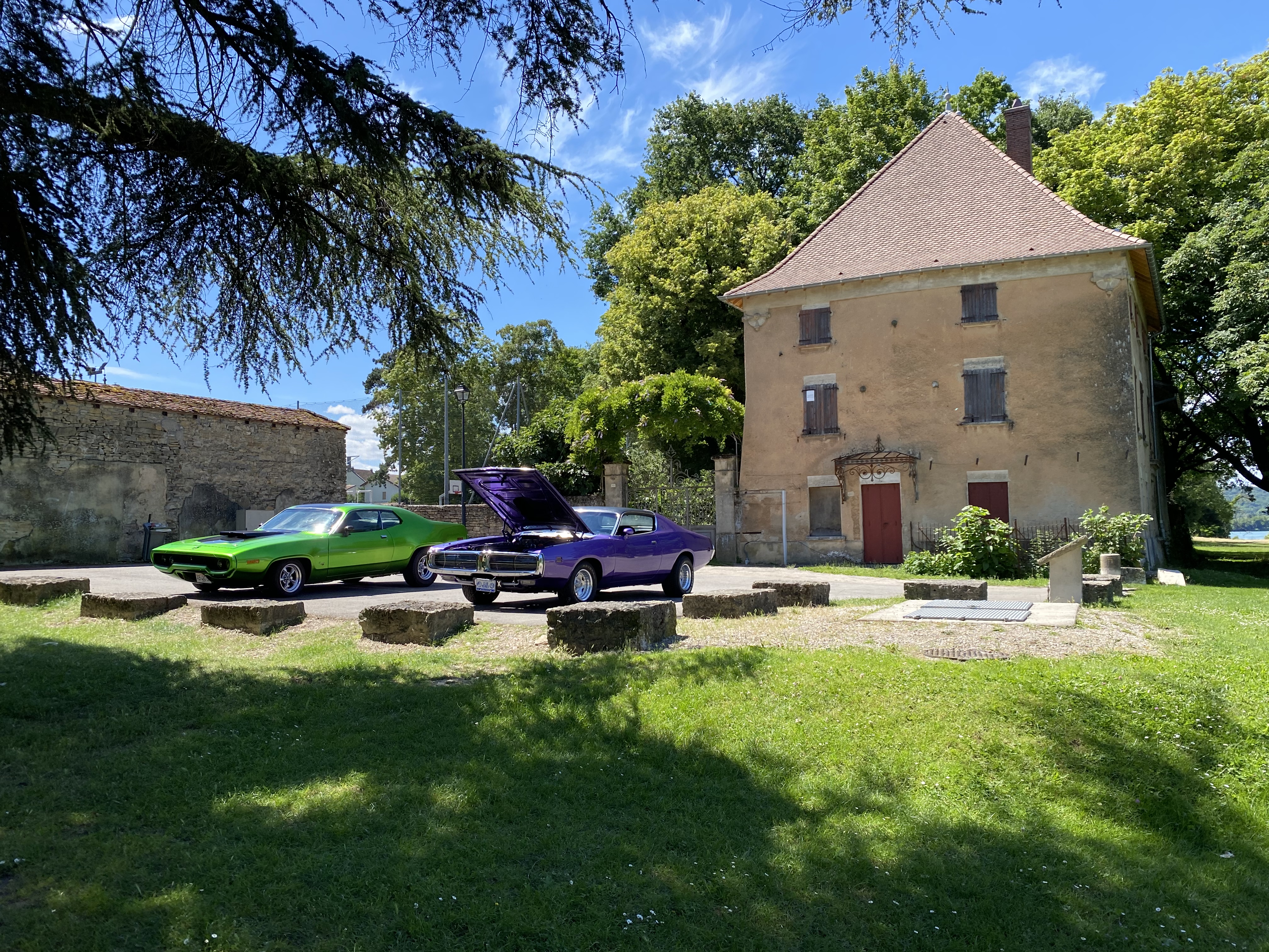 Rdv a crémieu a 14h et ensuite on go direction pérouges , 2 mopar allignées dodge charger et une plymouth satelite. D’autres volontaires ????