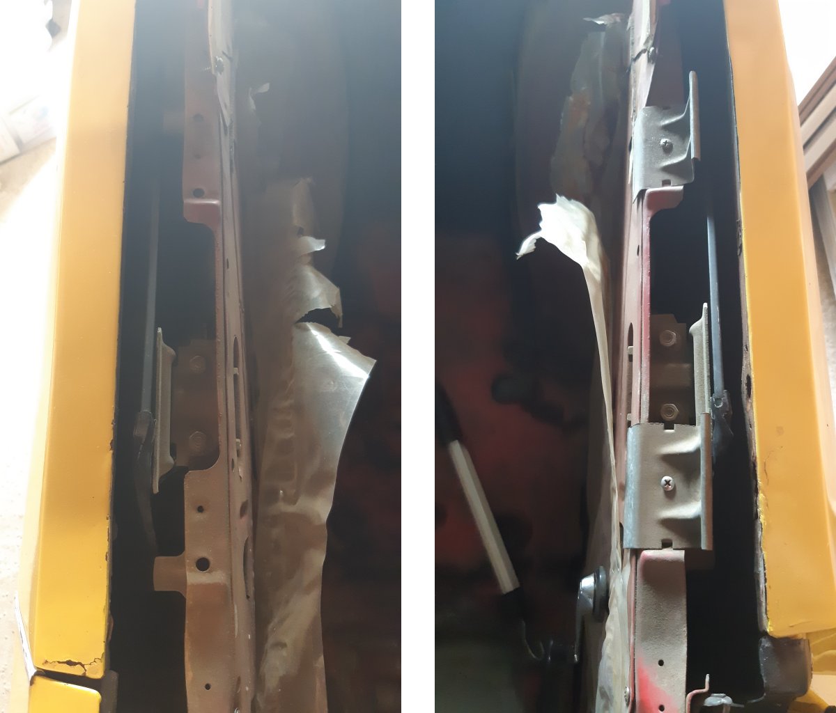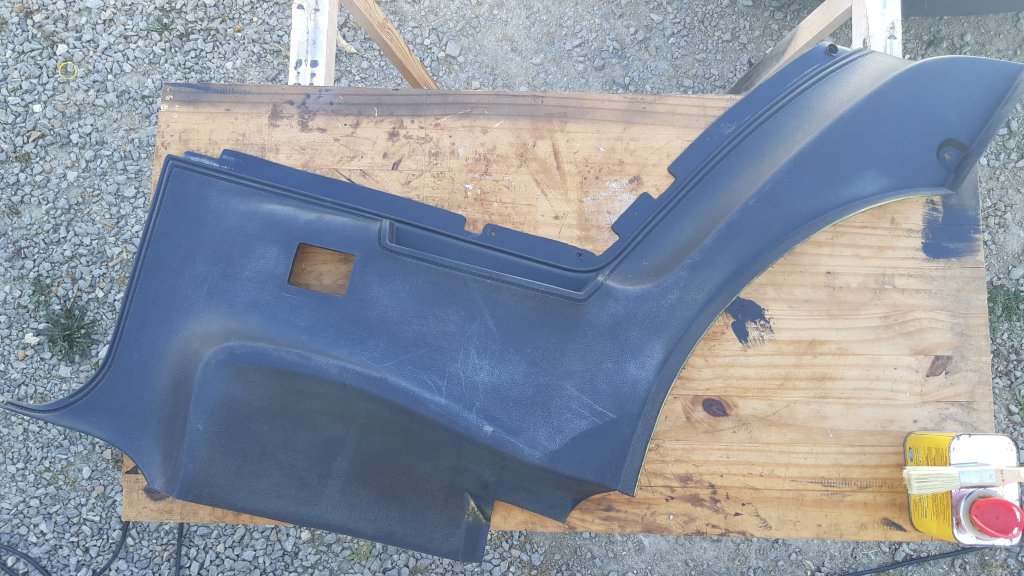 Mise en apprêt des tôles Pose de joint Et peinture anti-rouille pour finir tout ça Petite bricole pour mettre les pattes de support du panneau intérieur arrière droit qui étaient manquantes au démontage Mise en forme de la tôle Et montage après une couche d'apprêt