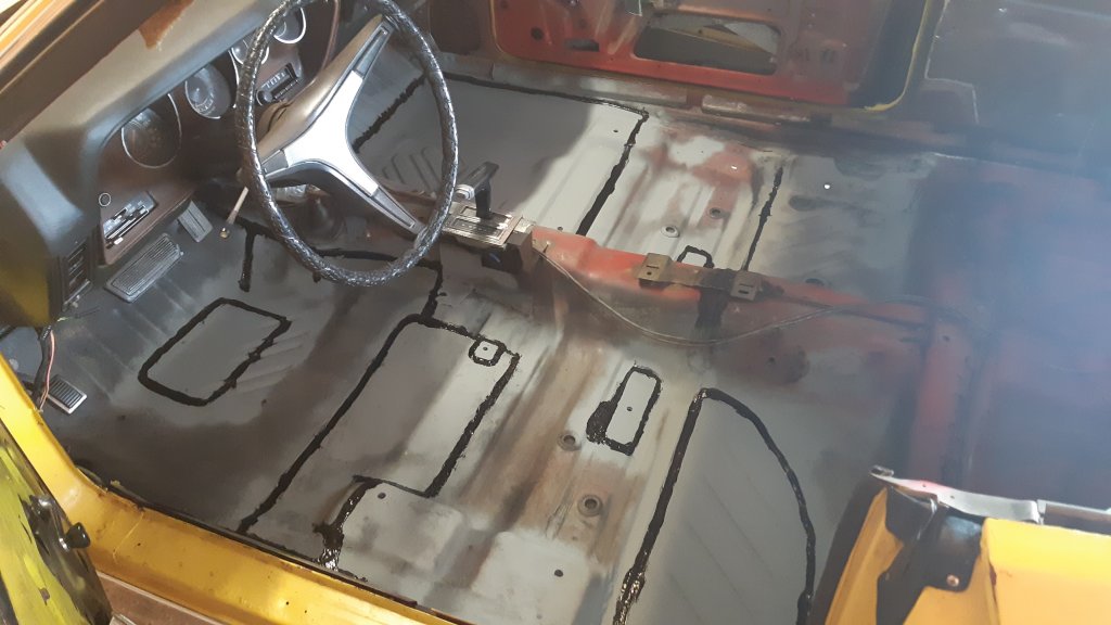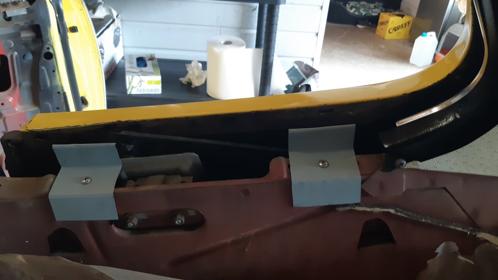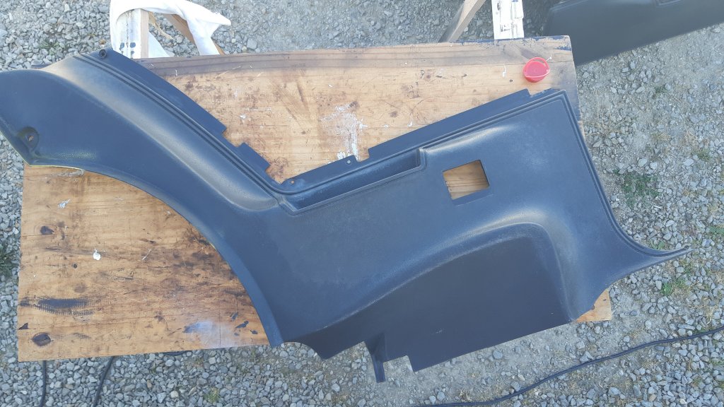 Mise en apprêt des tôles Pose de joint Et peinture anti-rouille pour finir tout ça Petite bricole pour mettre les pattes de support du panneau intérieur arrière droit qui étaient manquantes au démontage Mise en forme de la tôle Et montage après une couche d'apprêt