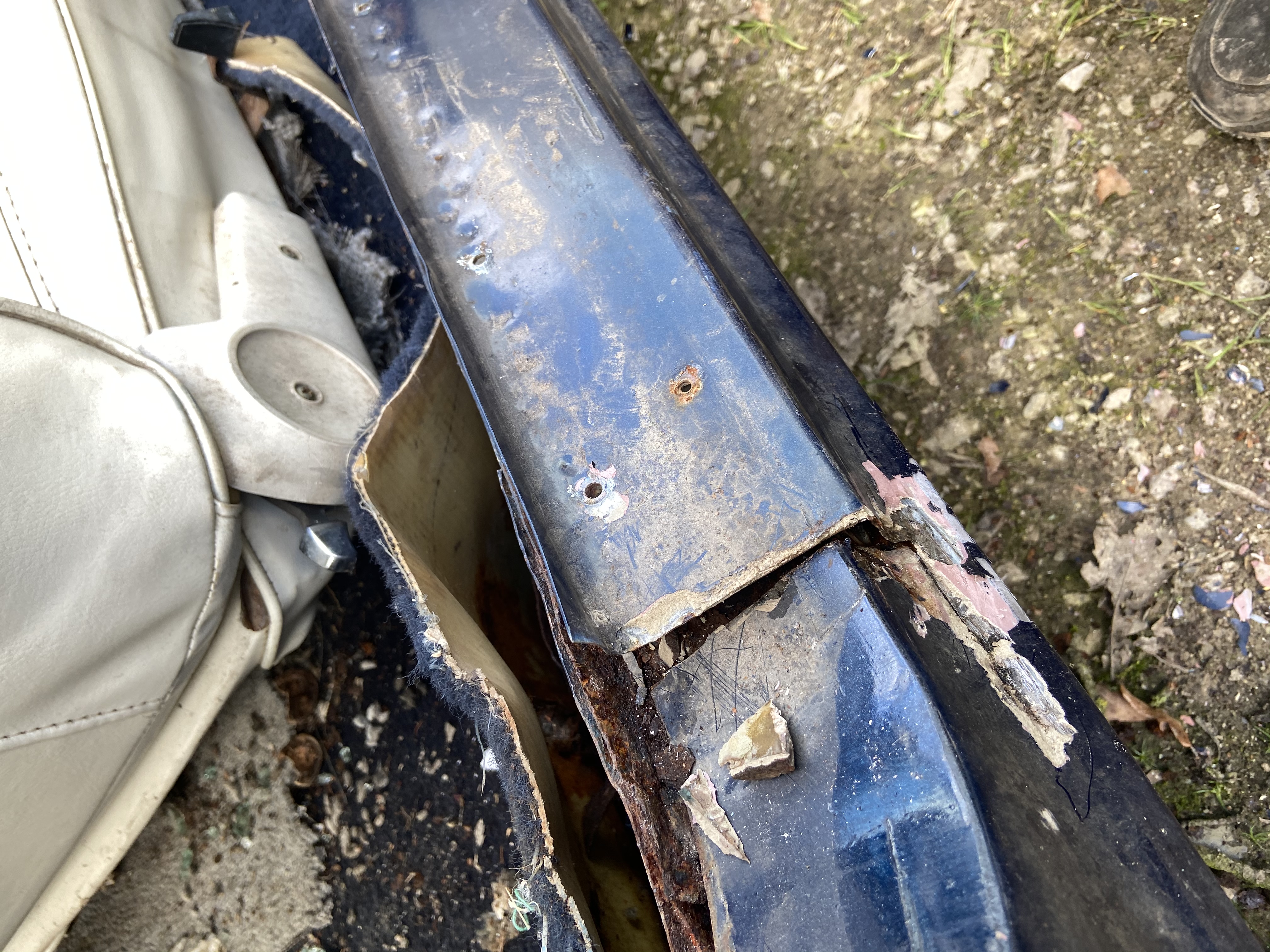 Résultat un bas de caisse "récent" poser par dessus l'ancien le tout fixer au rivet , une quantité de synto pas croyable ( par endroit bien plus d'1cm )