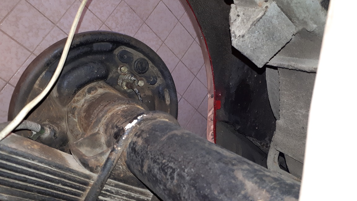 Nettoyage, dégraissage de l'arbre de transmission + nez de pont + pont + lames de ressort + tambours de freins.
