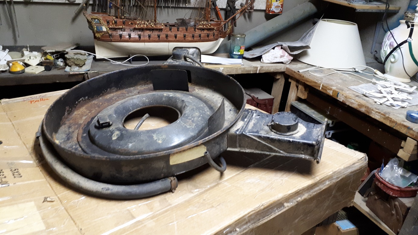 Puis brosse métallique et mise en peinture de l'ensemble à l'exception du nez de pont car les sources photographiques divergent (peint ou laissé brut de fonderie?). Ca restera brut tant que je n'aurai pas la bonne info.