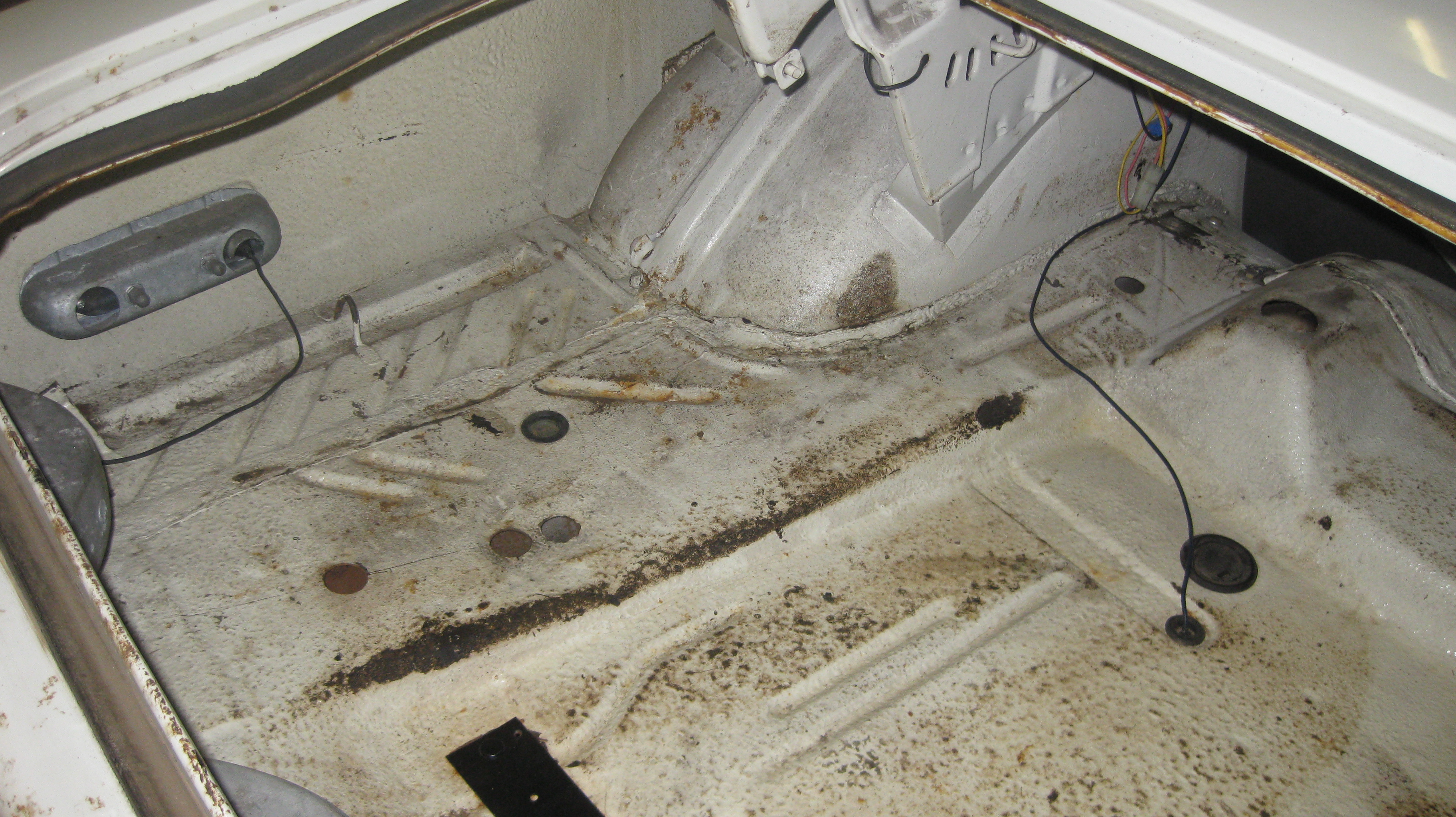 Pour l'intérieur du coffre je ne crois pas qu'il y ait eu -en sortie d'usine- un revêtement particulier autre que la peinture de la voiture + un tapis façon "toile cirée".