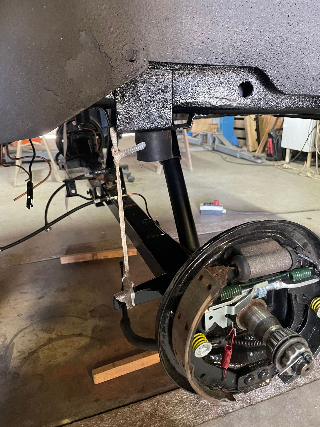toutes les canalisations essence et frein ont été refaites puis le Rampage a quitté sa rotisserie pour se retrouver sur un chariot pour poursuivre le remontage