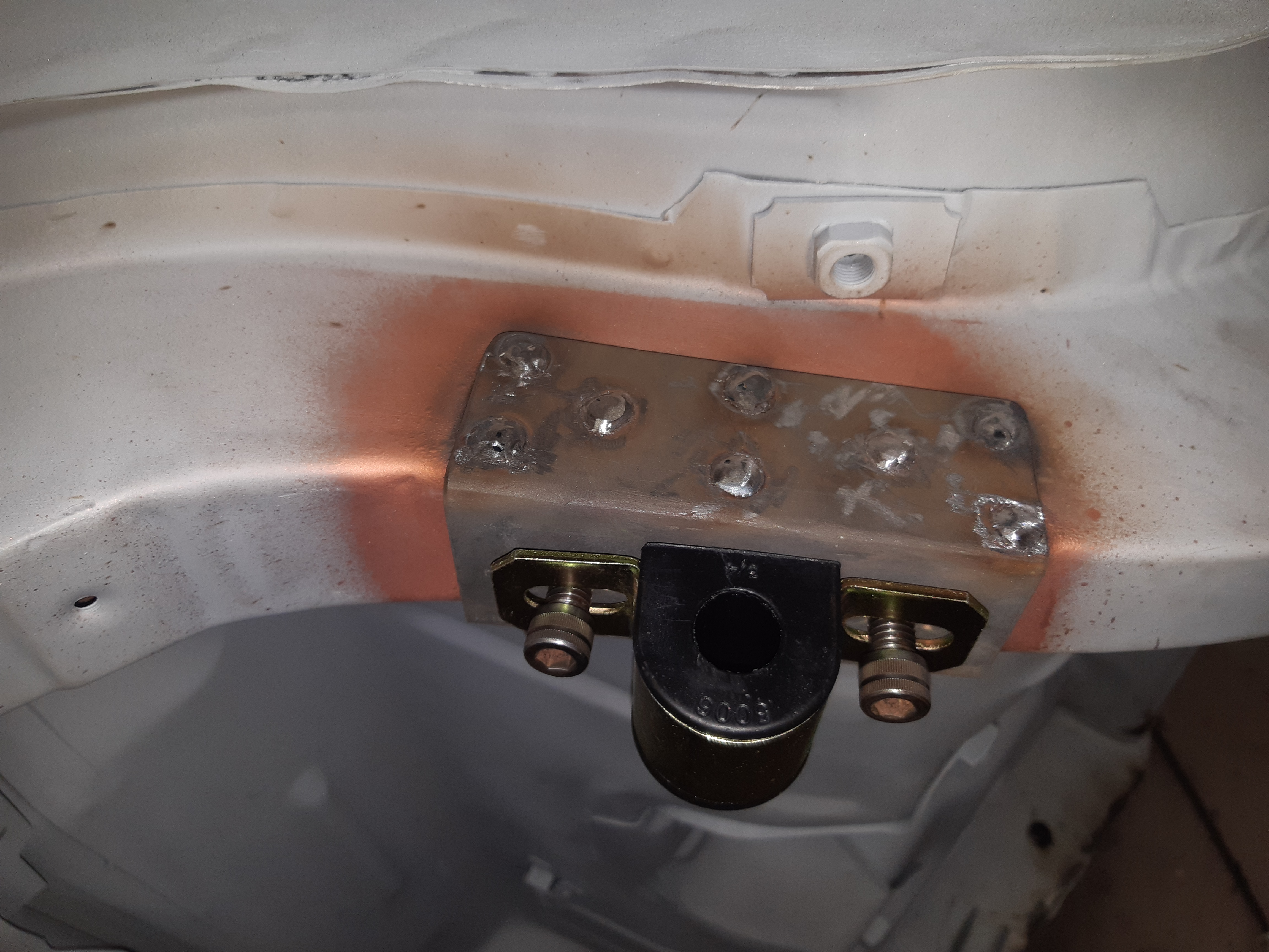 Fabrication de nouveaux ancrages pour la barre stabilisatrice arrière .