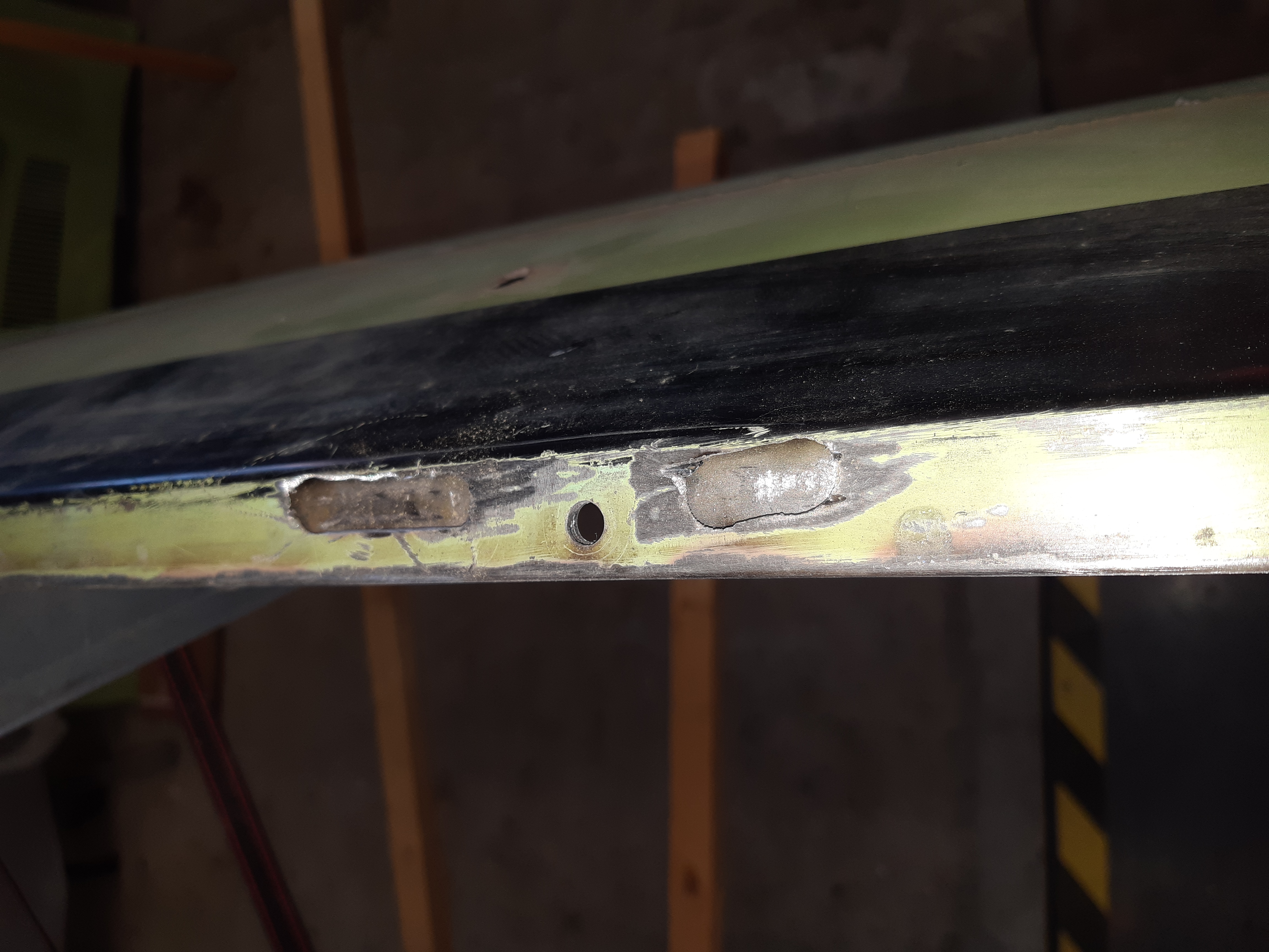 Découpe de l'aile arrière , qui après sondage , semblait bien croustillante et chargée en mastique...